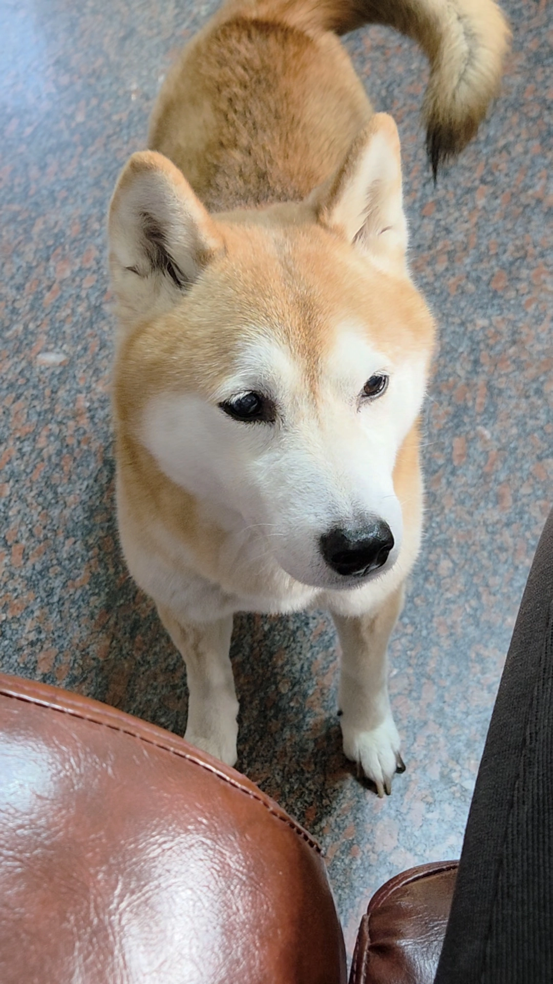 請把張圖中的狗變成公仔,並且裝在精緻的透明展示盒中,背景是百貨公司正在展示它