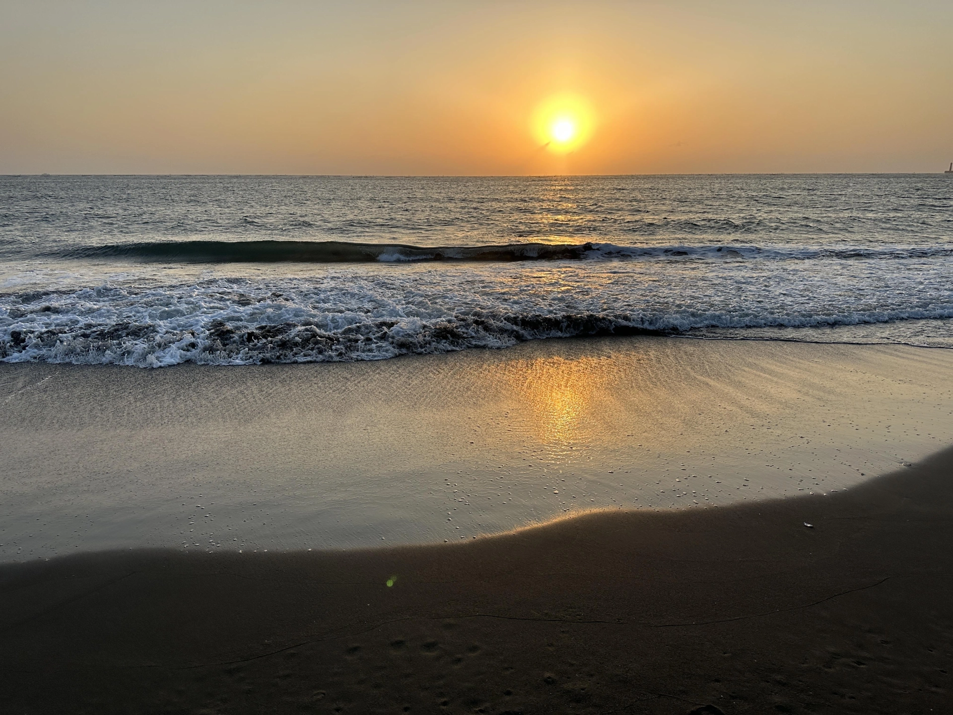 港口左紅右綠的兩盞燈在夕陽餘暉中早已亮起,為進出港的船隻指引方向,無聲守護著漁民的安全。
