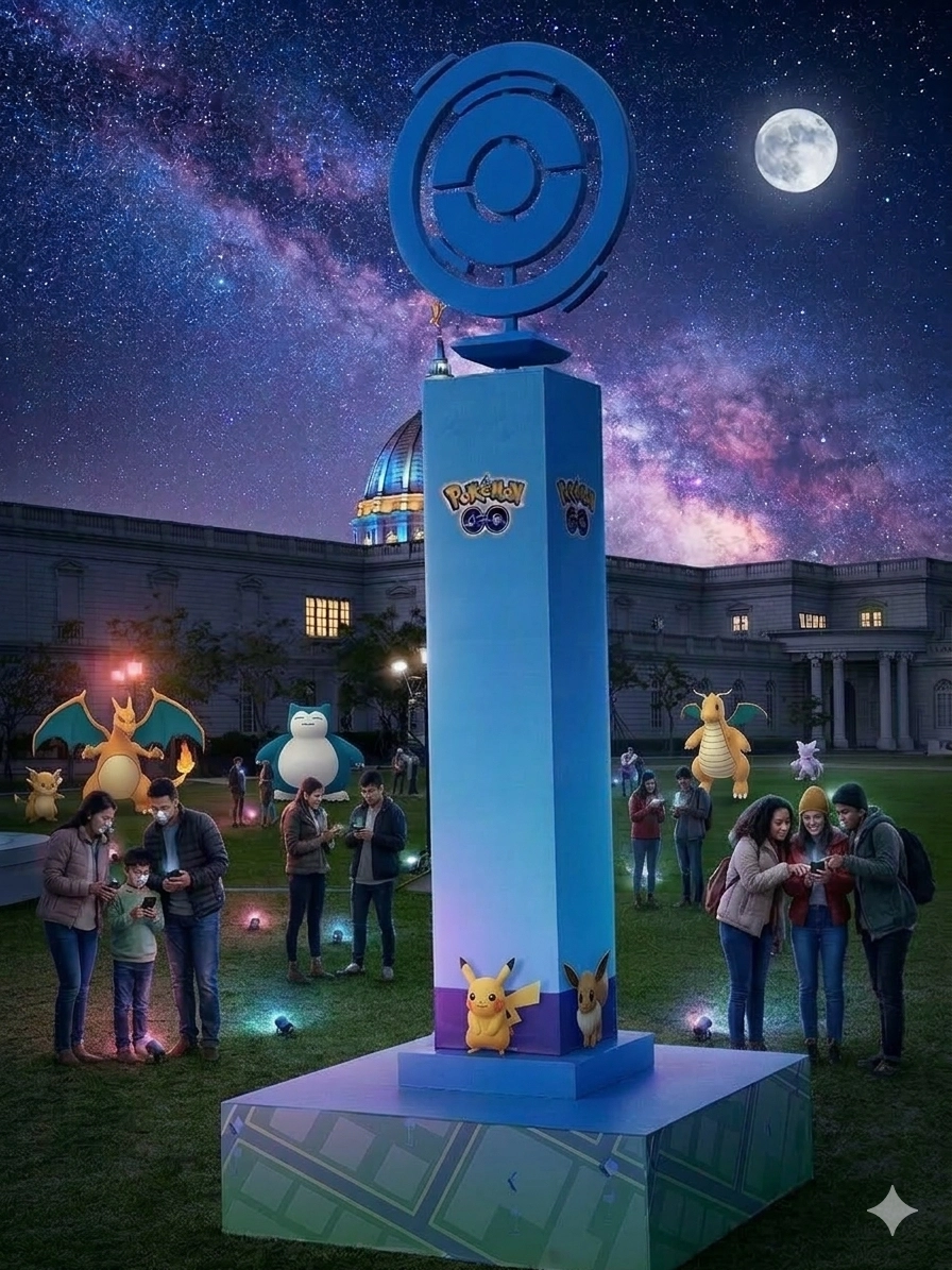 你說了幫我生成公仔,天空改成夜晚的銀河,地面鋪草地,草地上到處都是寶可夢和在抓寶的人們