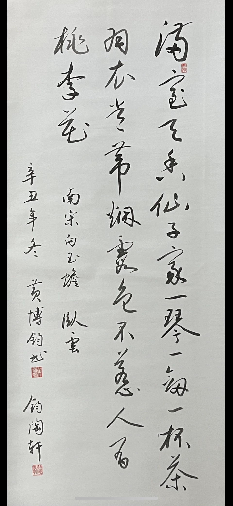 內文:滿室天香仙子家一琴一劍一杯茶羽衣常帶煙霞色不惹人間桃李花