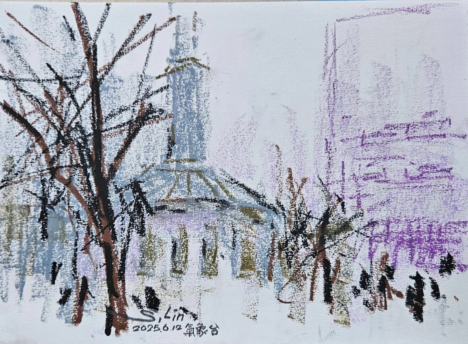 今天東興公園寫生,油性粉彩紙本