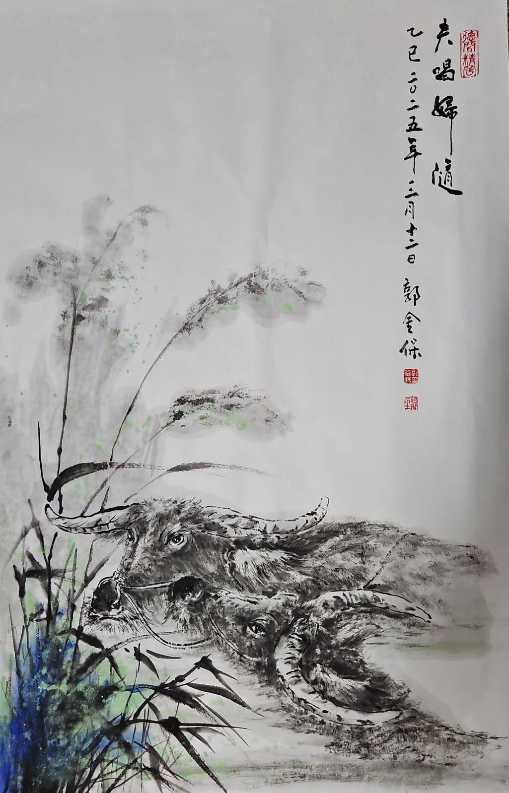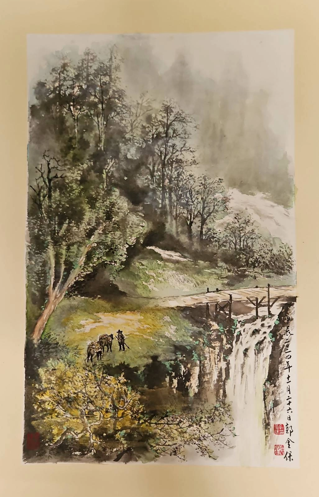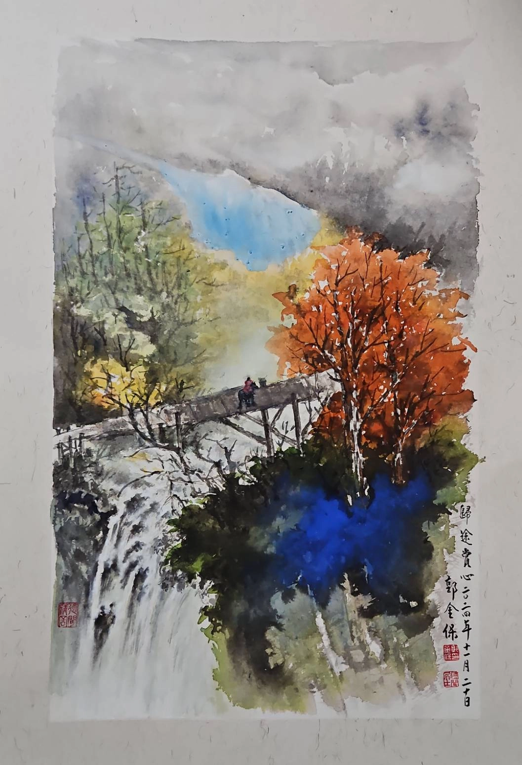 精神好,早起習畫完成《山居圖》山居盡日罕塵事.,人與雲峰相對開二O二五年九月二十七日郭金保