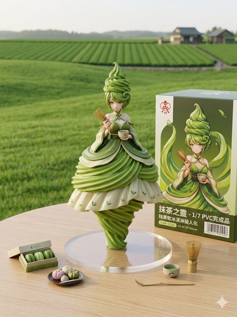 在公仔的背後是一大片草地,有大自然與抹茶相關的景色 但主題要明顯不可太過雜亂