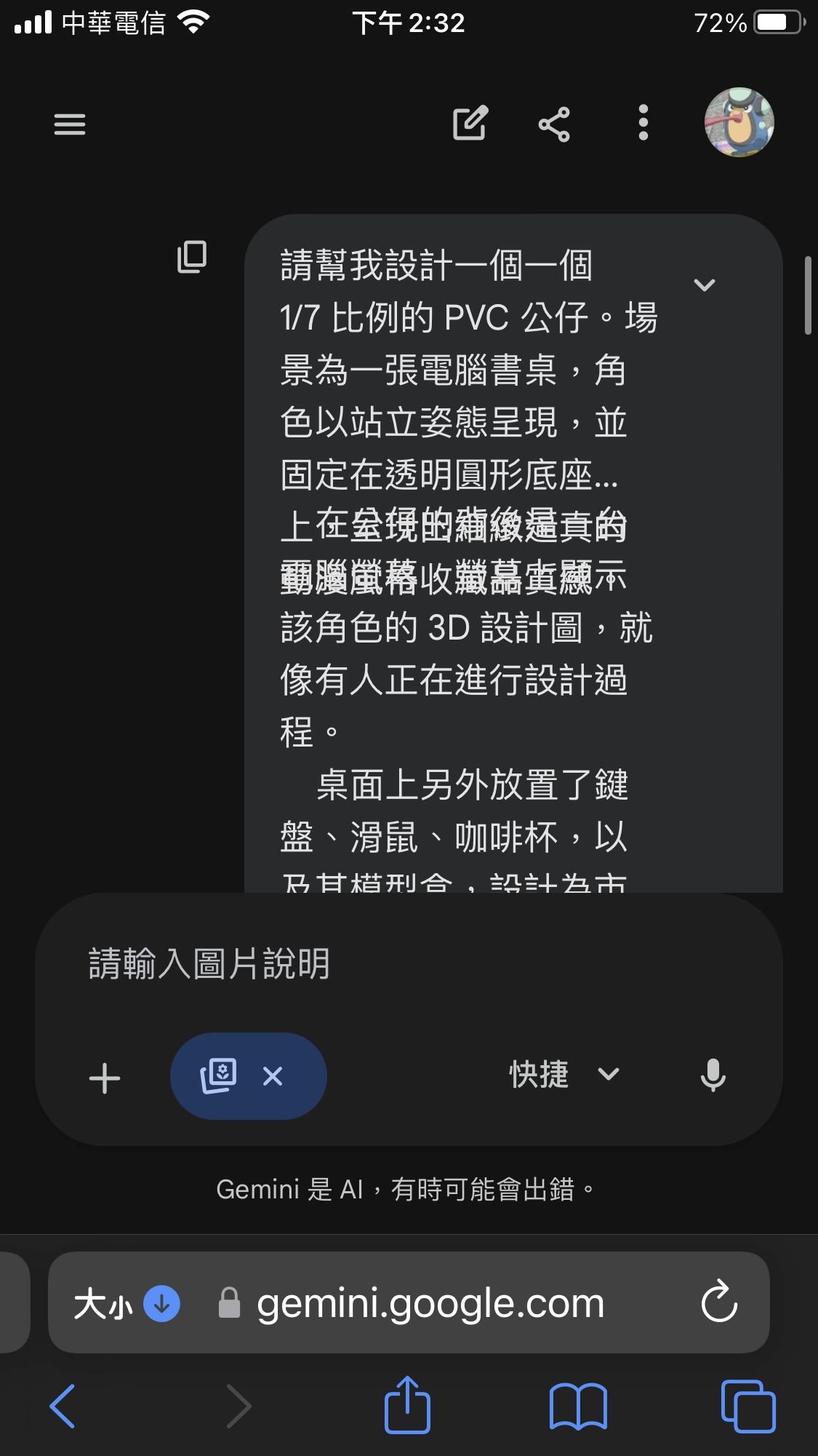 在公仔的背後是一台電腦螢幕,螢幕上顯示該角色的 3D 設計圖,就像有人正在進行設計過程。