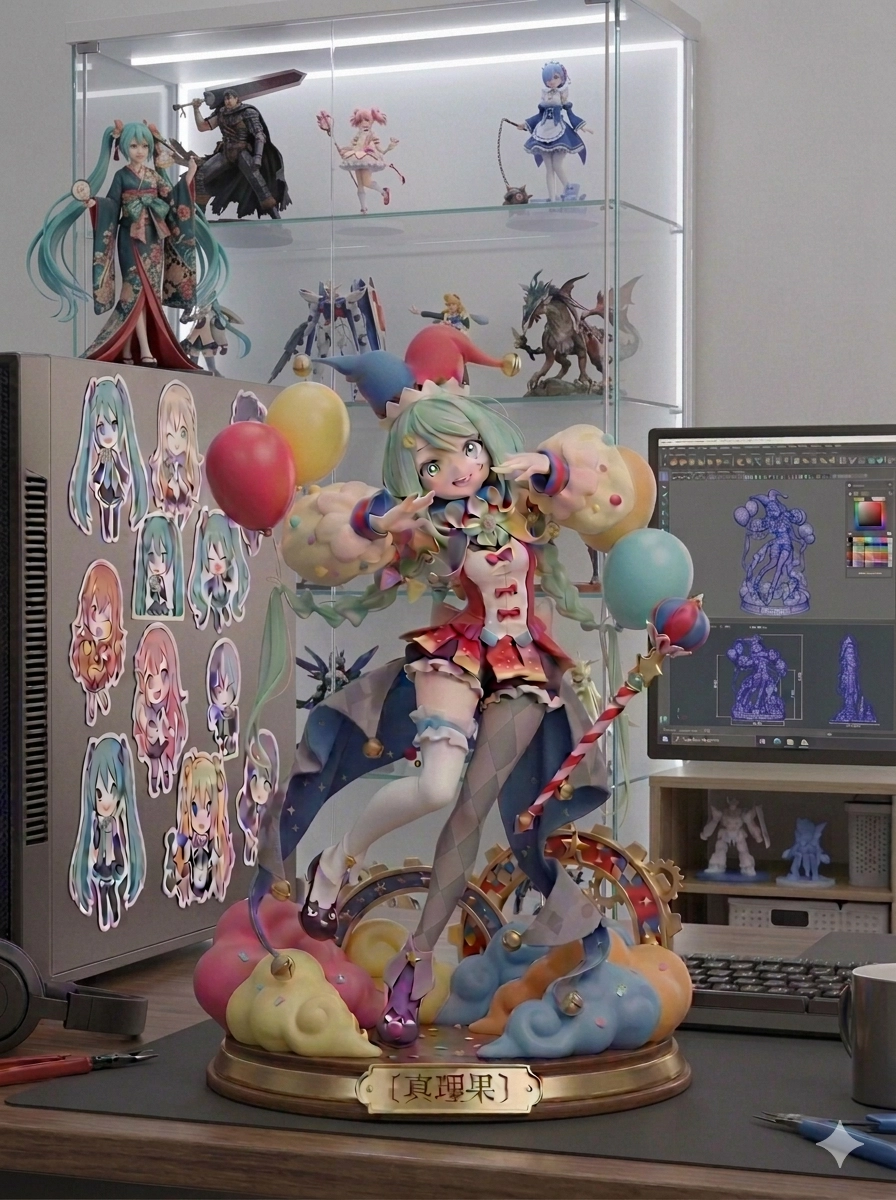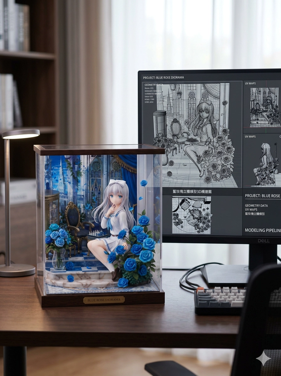 模型的圖源是〔天之火創作小屋〕,這是美術作業把圖上的人物照著動作做成模型。幫模型加上底座,底座上寫「