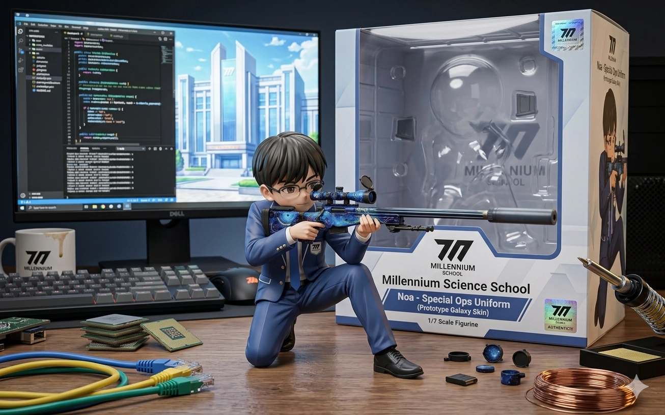 幫我生成一個3DQ版公仔背景要電腦公仔盒公仔要底座