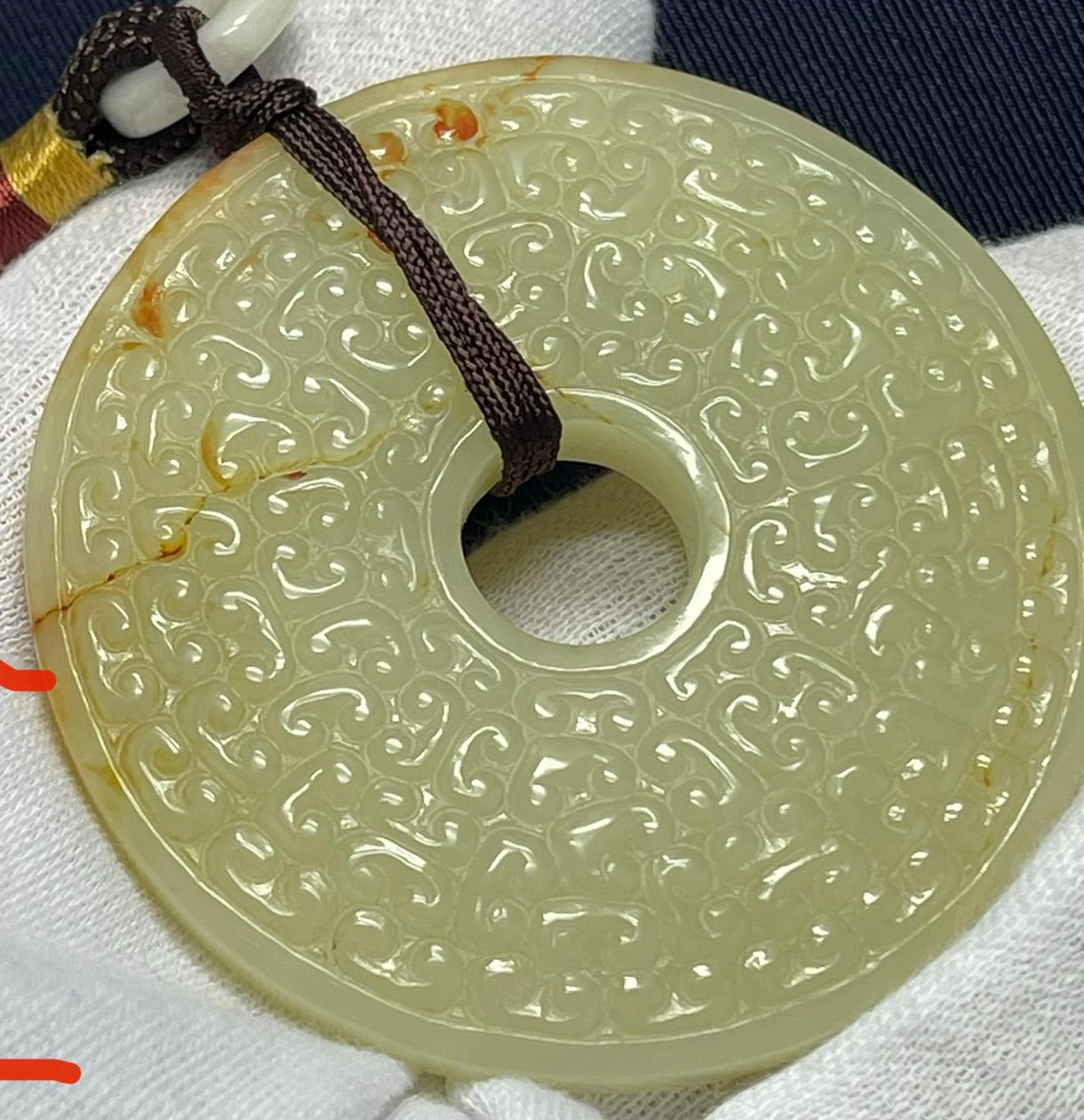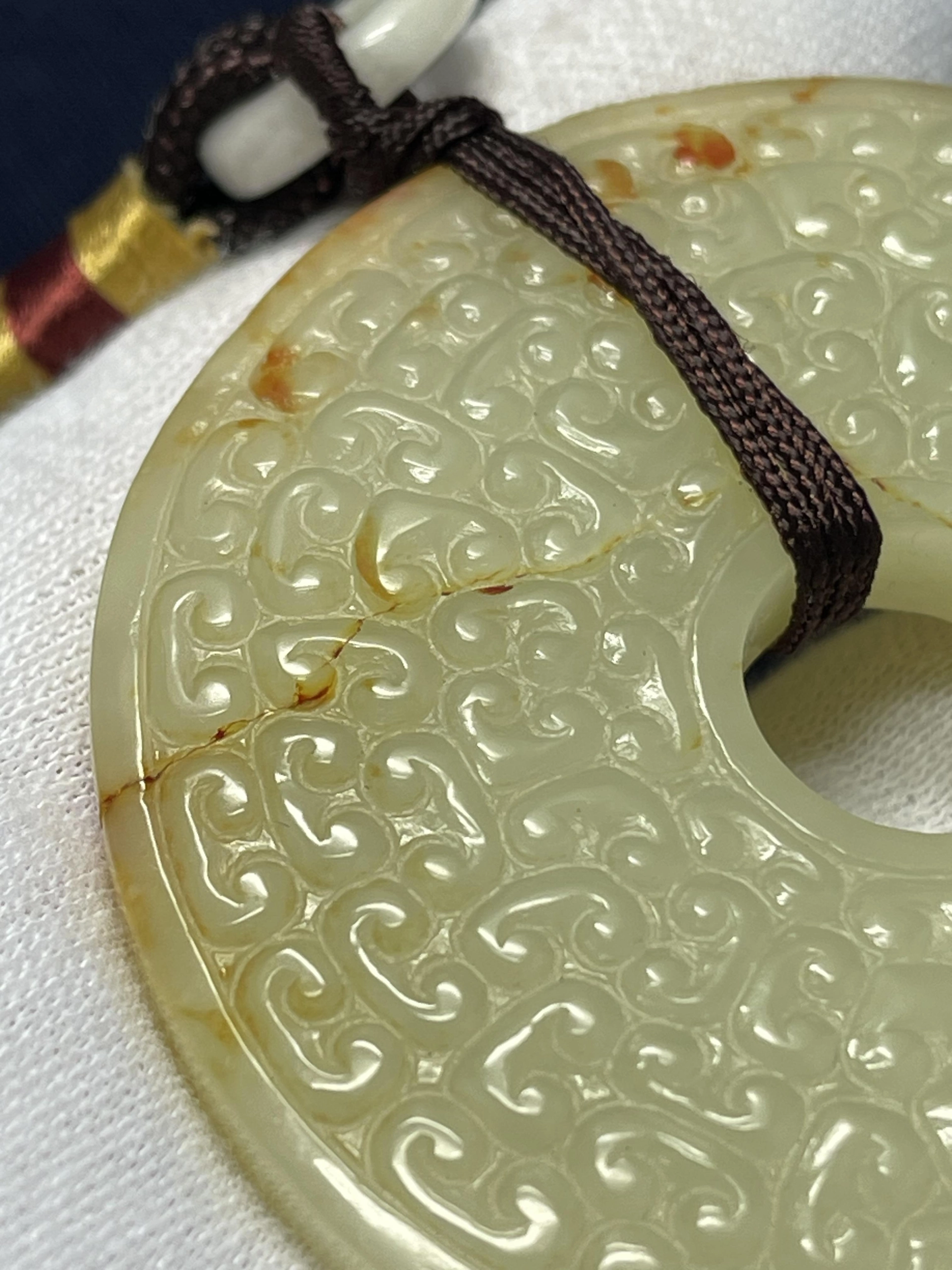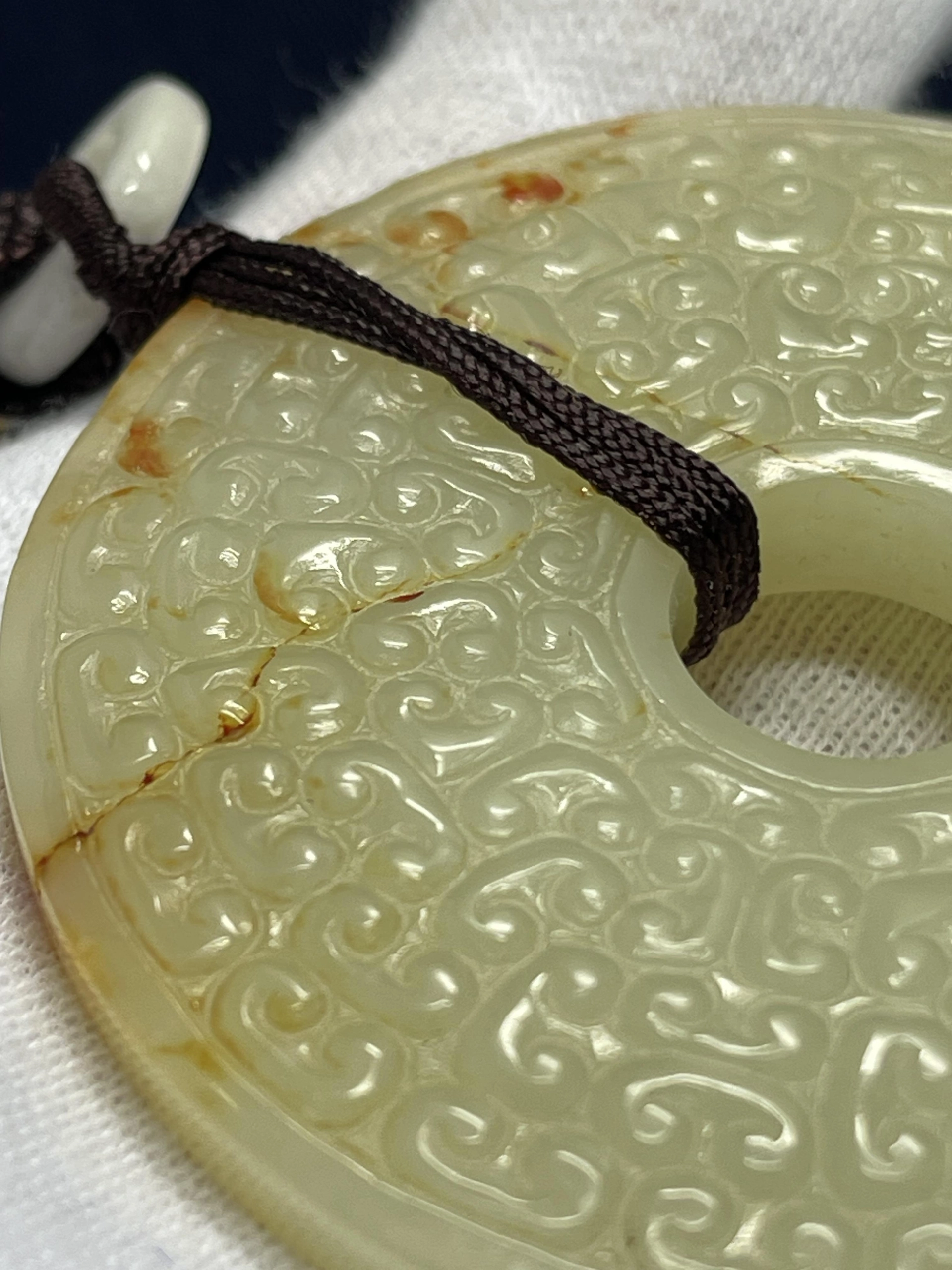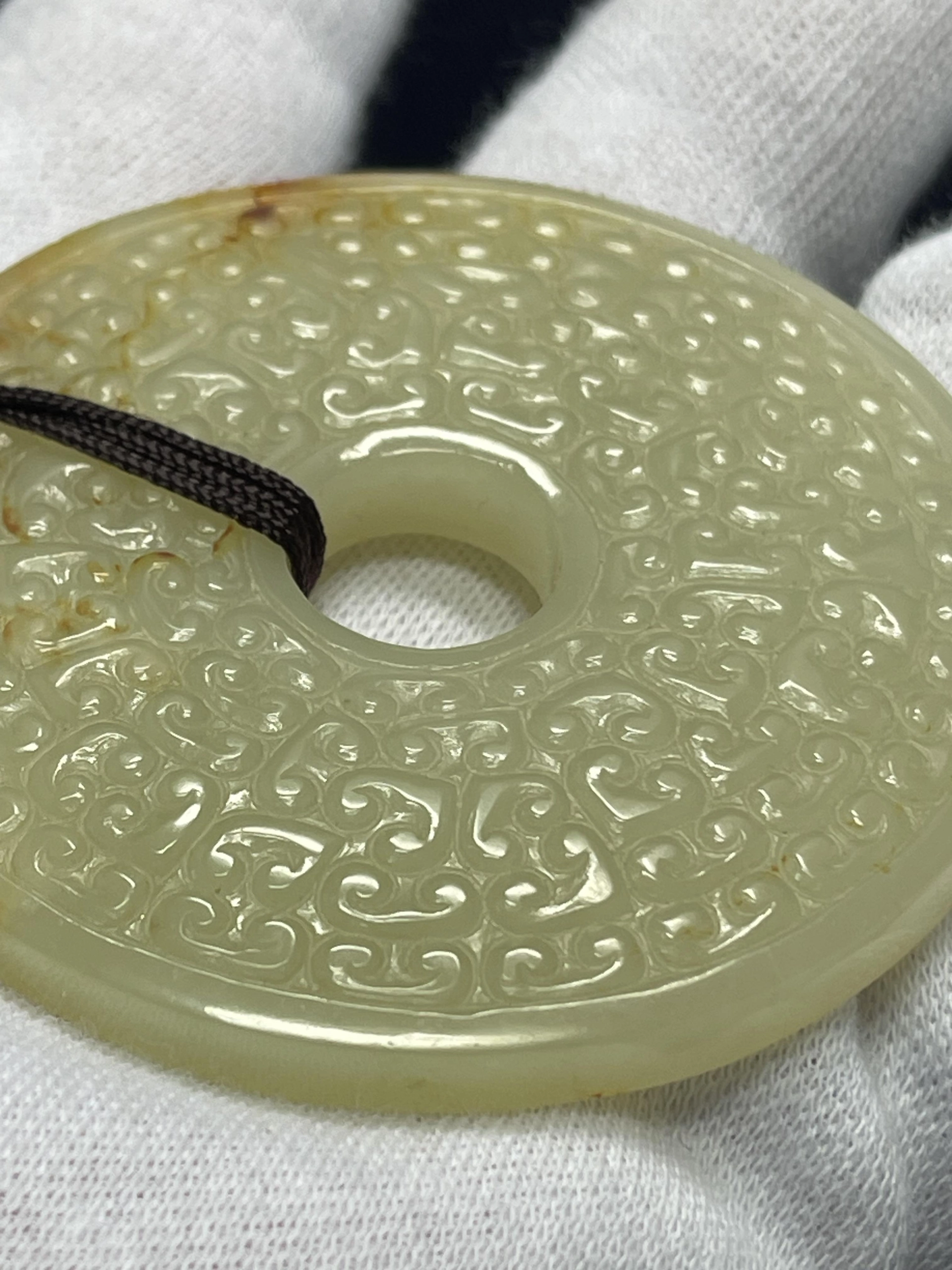 戰國玉璧,淺浮雕,雲紋和穀紋相雜紋。