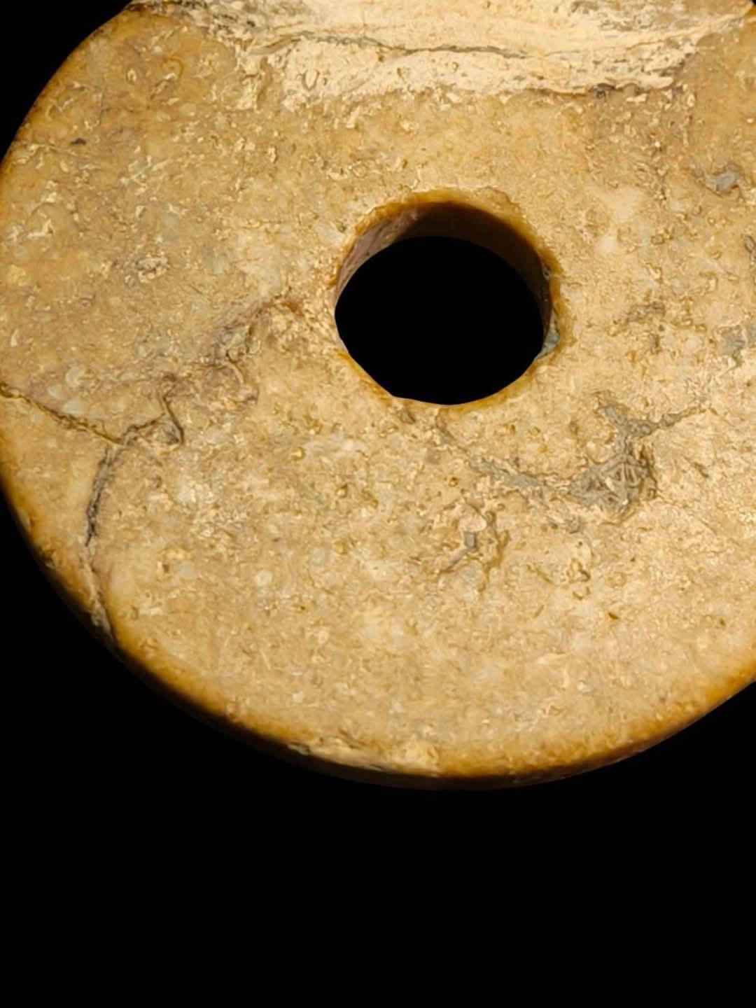 評 鑑:土色根植大地,取得大地的能量,穩定成長動能在人世間行走,這件玉璧帶給你平靜恬淡幸褔德利.加持幸運.