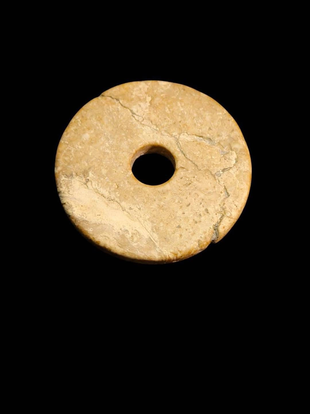 介 紹:此件高古素璧,器型規整,拋光精緻,滿佈風化淋漓.土咬蝕洞自然老化,呈現古琢意味,吉祥圓滿,與天祈樂!
