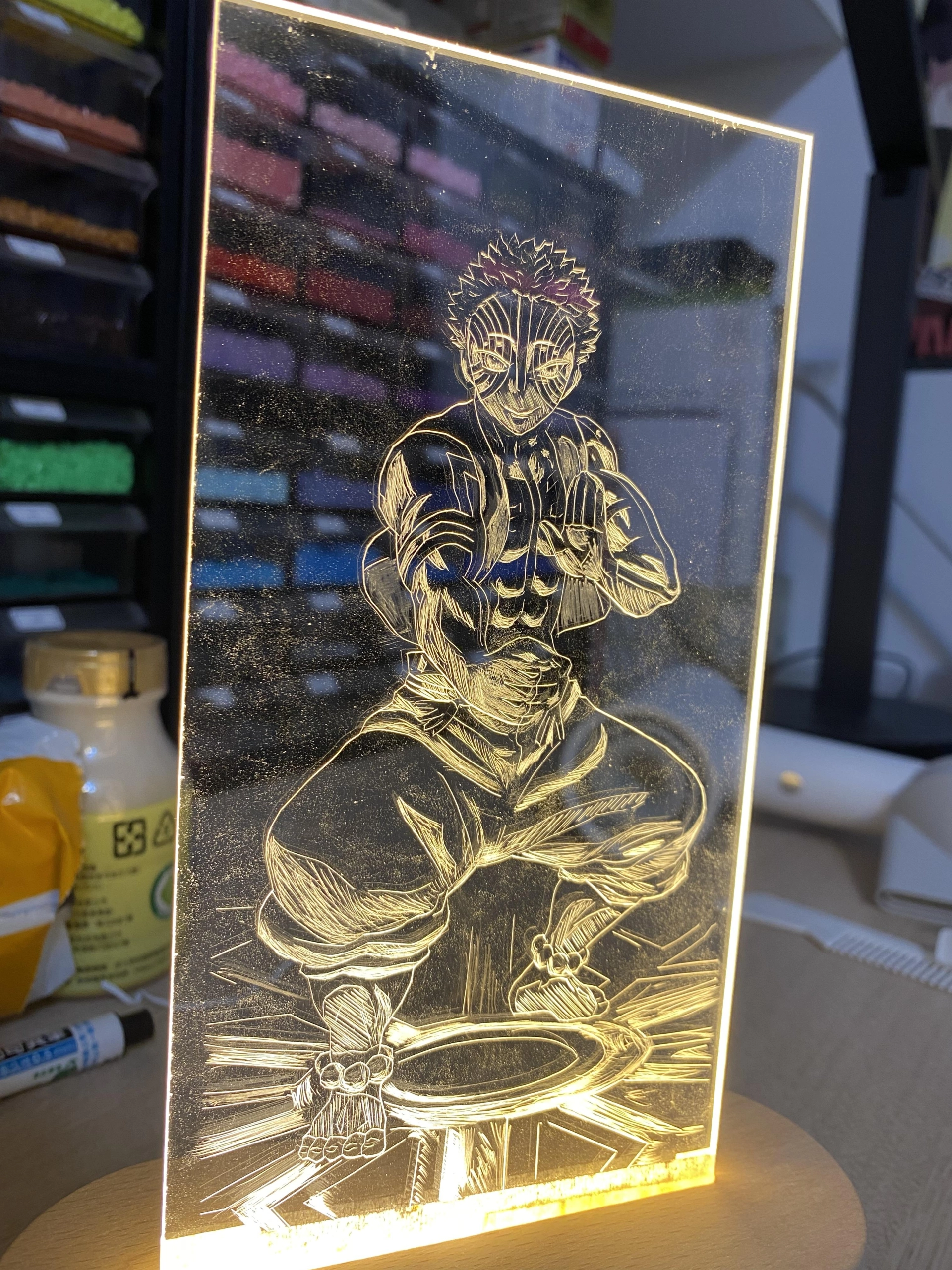 這件以壓克力製成的「哥布林」雕塑,透過手繪草圖確立造型後,完全以手工割製方式直接在壓克力上切削與雕塑