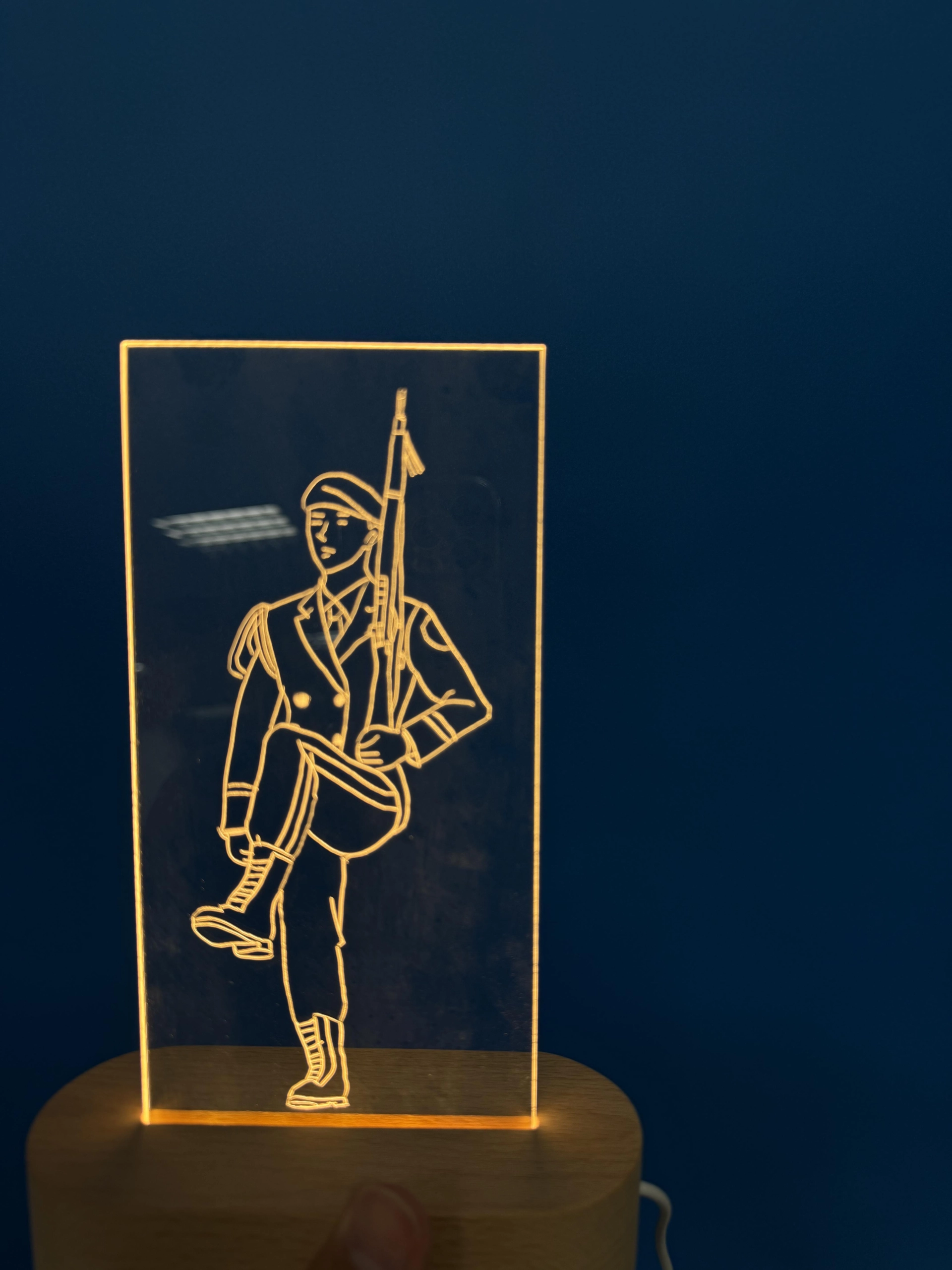 作品以我參與海軍敦睦遠航、在台南安平港開放活動中進行儀隊表演的瞬間為發想。以線條與光影記錄當時的步伐