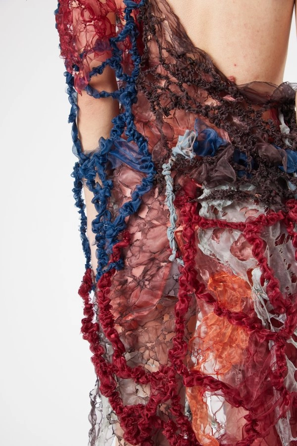 以身體為創作的起始點,如同顏料擴散於水中到身上,一點一滴到釋放,像是煙霧也像是爆炸時的火花,在身上遍