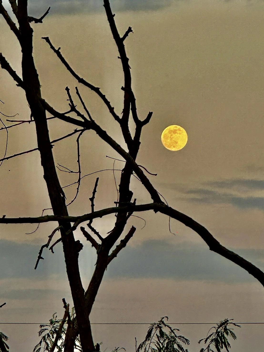 這是在要去倒垃圾的路上,抬頭看天空發現它呈現很美的金黃色,就隨手把它拍下來了~