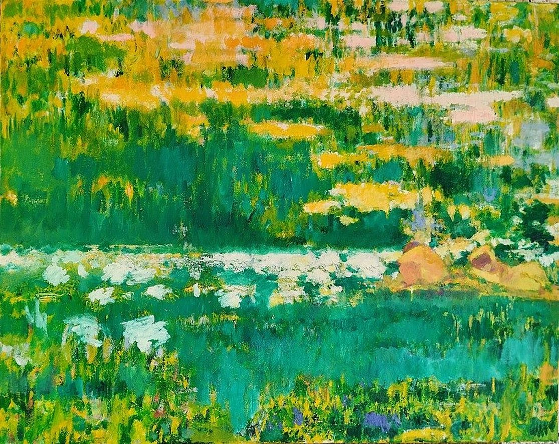 創作理念說明:以多樣筆觸表現油彩乾丶溼和濃丶淡的形體,演繹了遠近、厚薄亙襯的流動。羊群、牧者和風景融