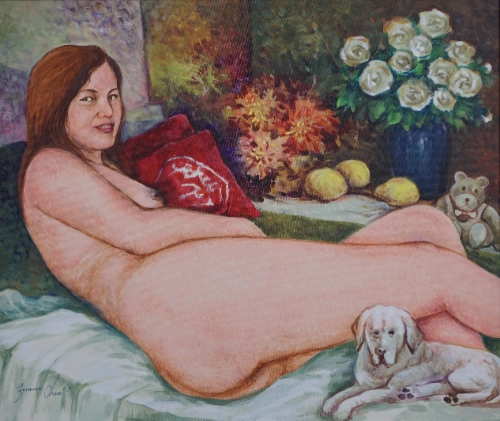 創作理念:繪畫多年希望能融入自己的風格,創造出詮釋的方法,畫裡要有裝飾性,但不是裝飾畫。融合中西貫穿