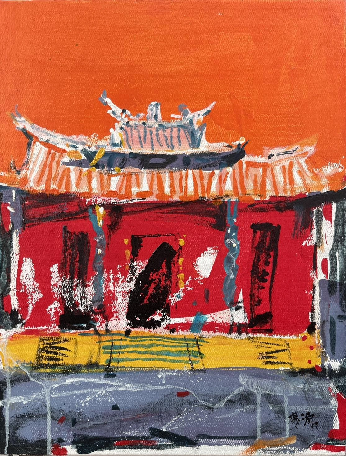 作品以天狗形象為主題,靈感源自作者對廟會文化的熱愛。以俐落線條刻畫出神祇威猛而靈動的姿態,呈現傳統信