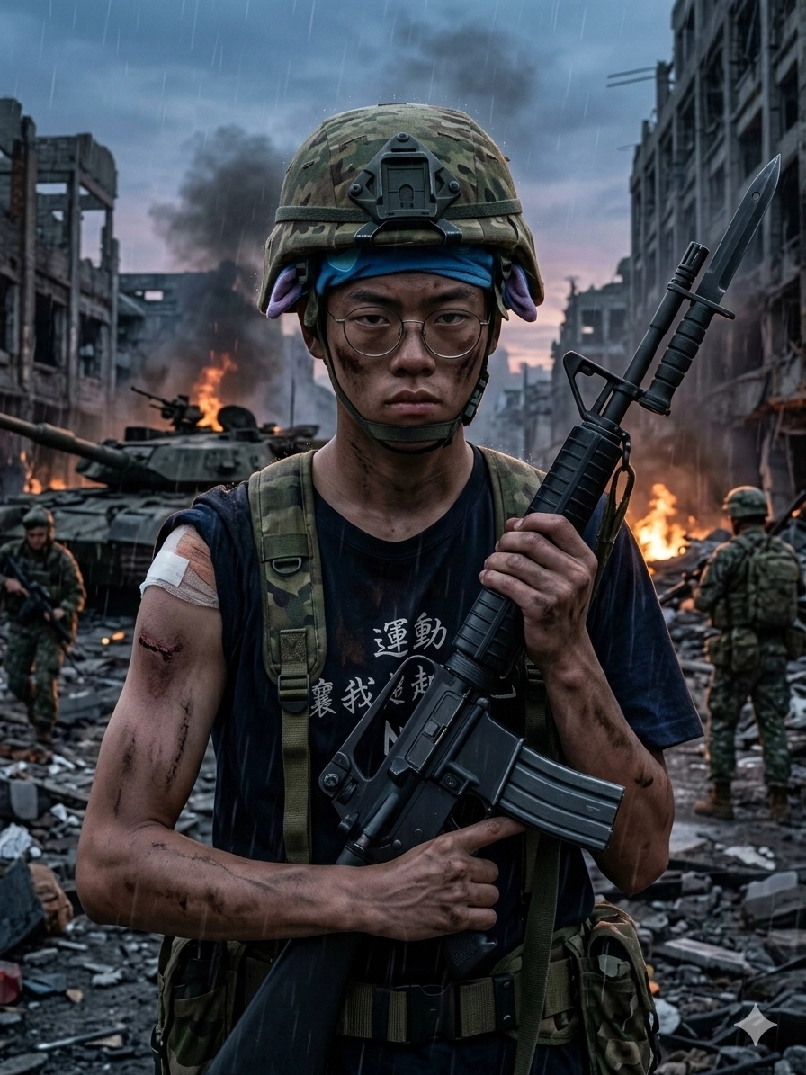 幫我把這張圖的人物提取出來,去掉背景,以單獨的人物模型並抱持同樣的的動作轉成3d公仔的樣子站在電腦桌
