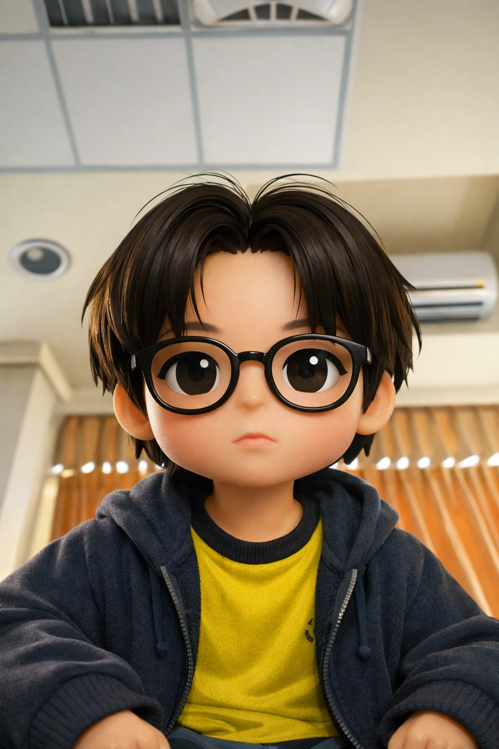 一張高品質的3D渲染圖,主角是一個可愛的個人化大頭公仔。比例上頭部誇張地大,身體小巧(Q版/Chib