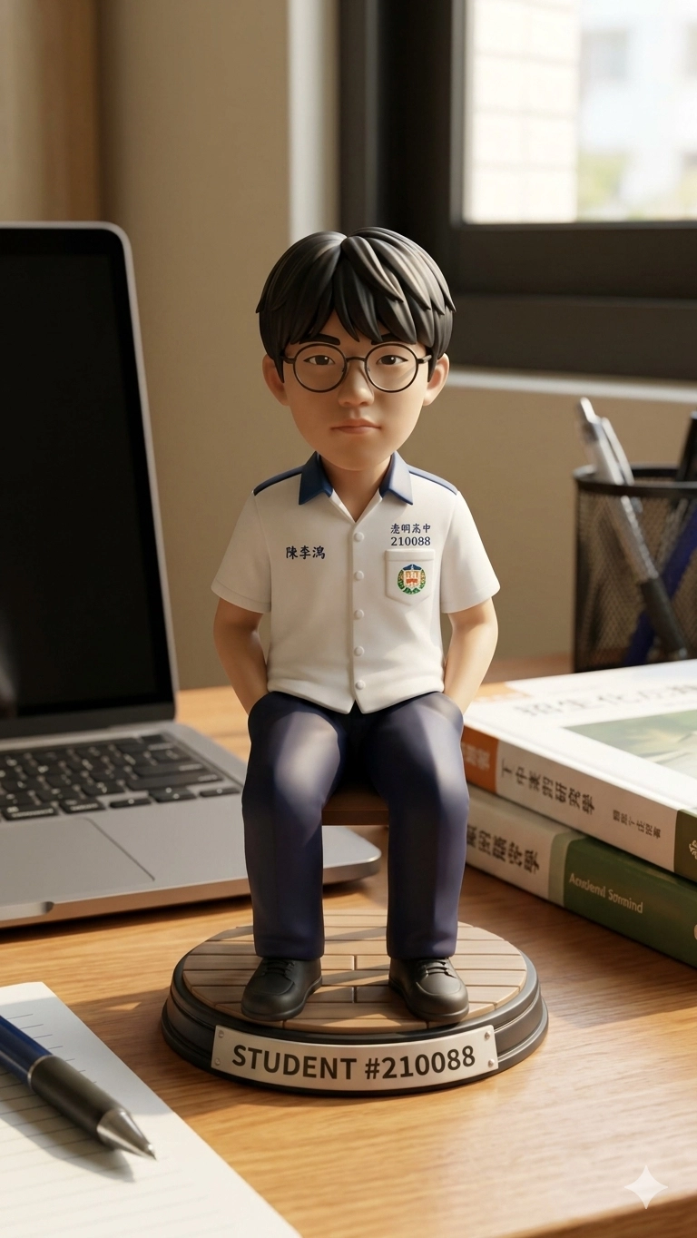 幫我把照片的人做成公仔Ai:有墨鏡的照片幫我把墨鏡去掉並加上背景Ai:最後呈現