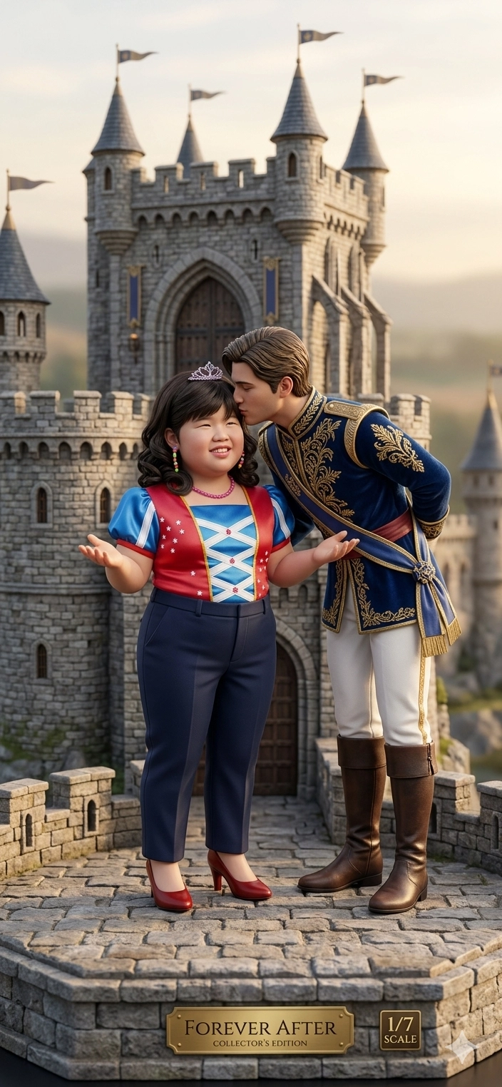 請幫我使用原圖,製作成1/7的公仔模型,然後把公仔放在桌上