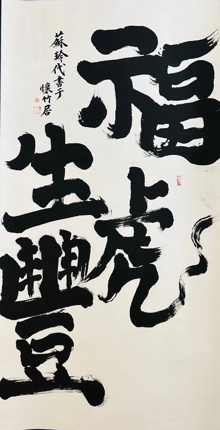 是配合80號的油畫【長白山天池】展出而創作的「風起長白雪,雲湧天池巖」這個對聯也是我自己想出來的,二