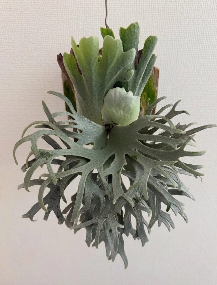 原圖為一株鹿角蕨圖片,請Gemini作成模型,輸入指令為:請將我提供的圖片,將圖片中的鹿角蕨作成塑膠