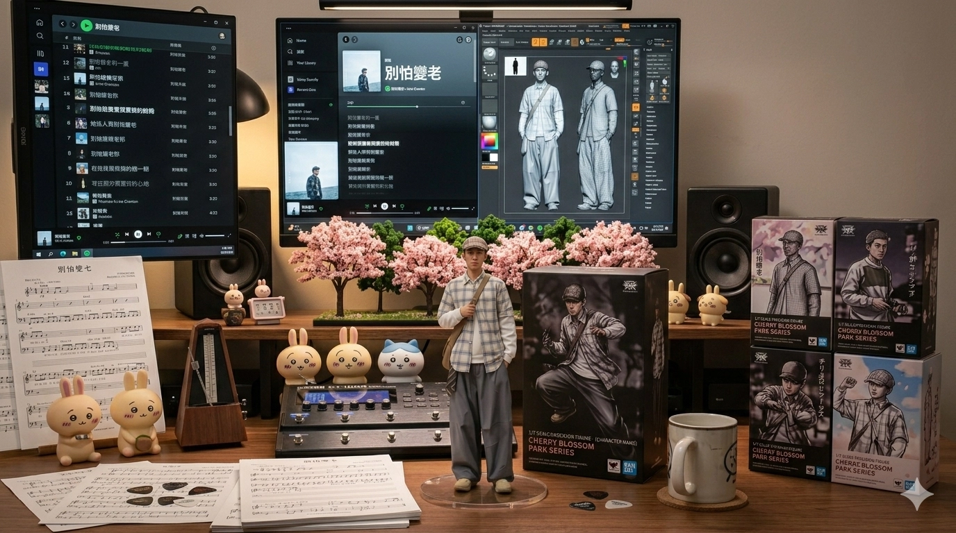 60621林士淙使用Gemini製作指令:請用我提供的原圖,把圖片內主體變成電腦桌前的立體公仔。場景