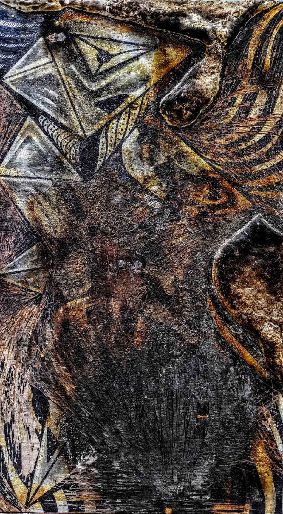 此作品結合銳利和圓融的幾何形勾勒出代表自我的三種野獸型態,介於抽象與具象之間所產生的指涉物,營造出威