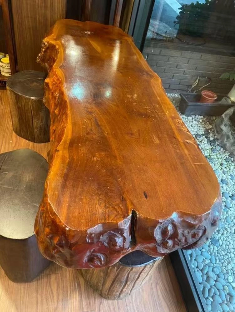 白楊木刻。原木已受歲月與白蟻部分侵蝕,但也巧妙的化為自然的紋理圖飾,正可以呼應人生體會。名曰「禮敬」