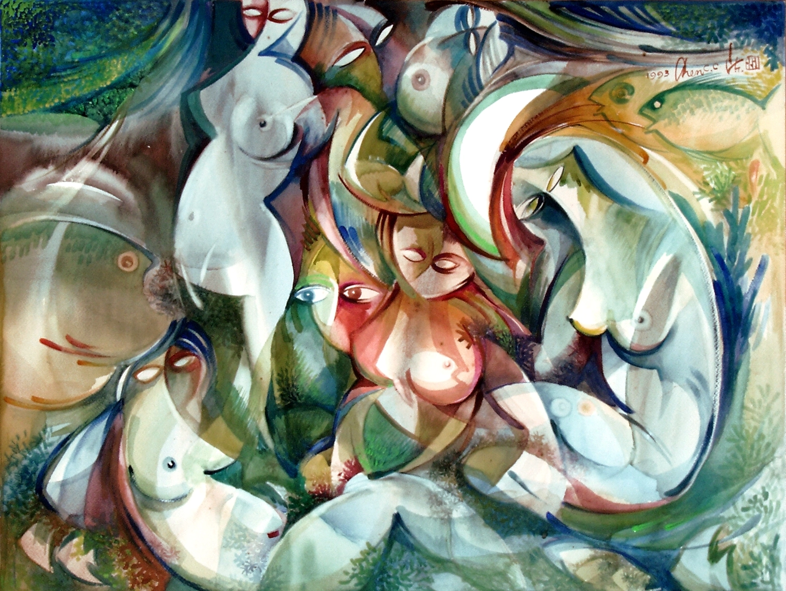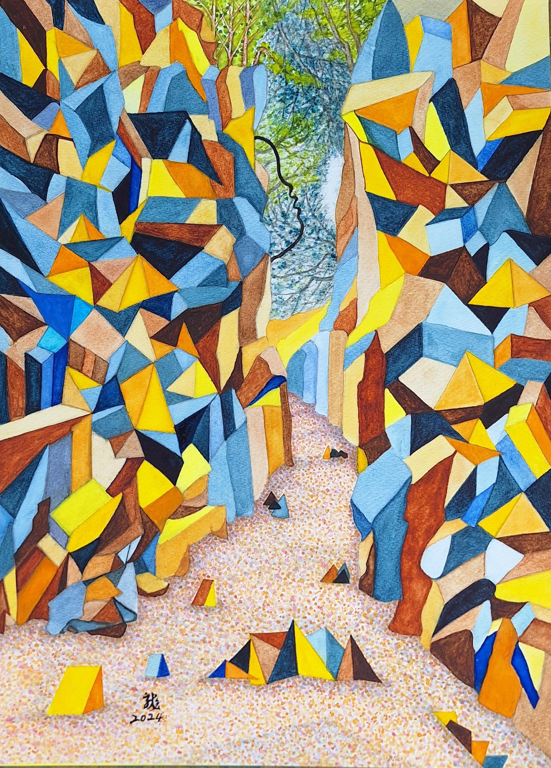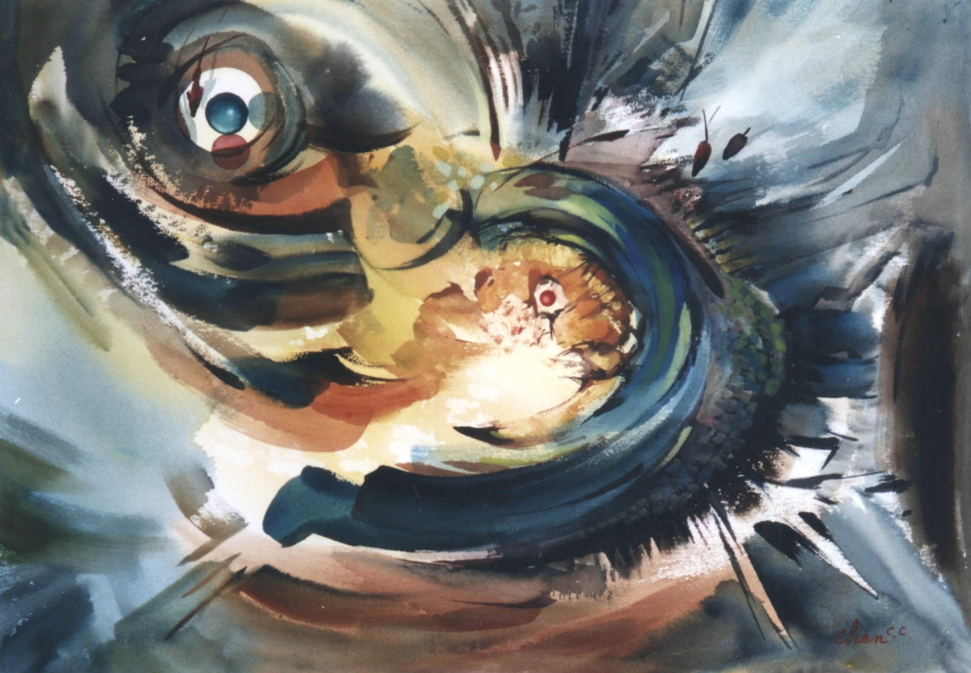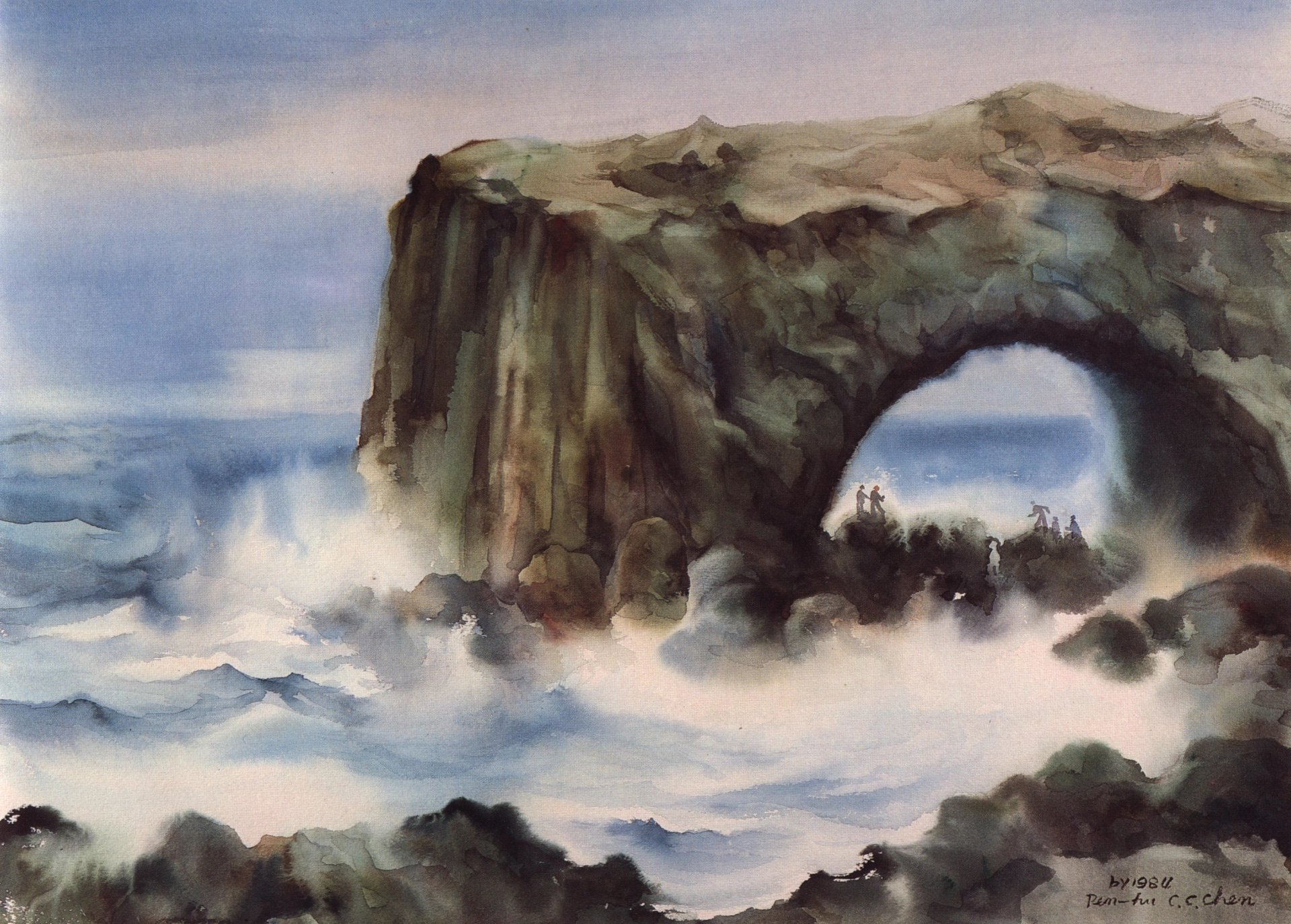 這張水彩'畫完成於1989年,是我從台湾回澎完成的作品。從西嶼坪看過東嶼坪水道的浪濤。