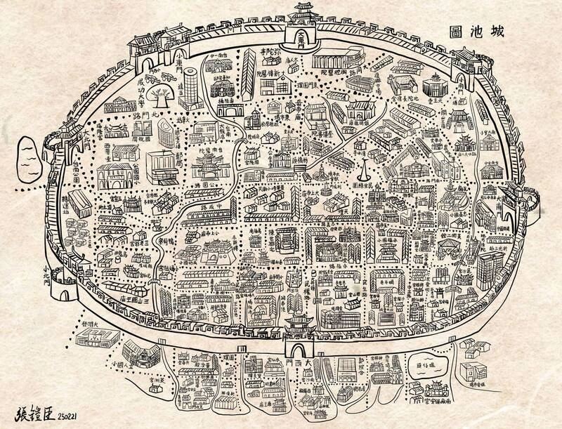 古地圖竟出現新光三越?張鎧臣創作現代版台灣府城池圖