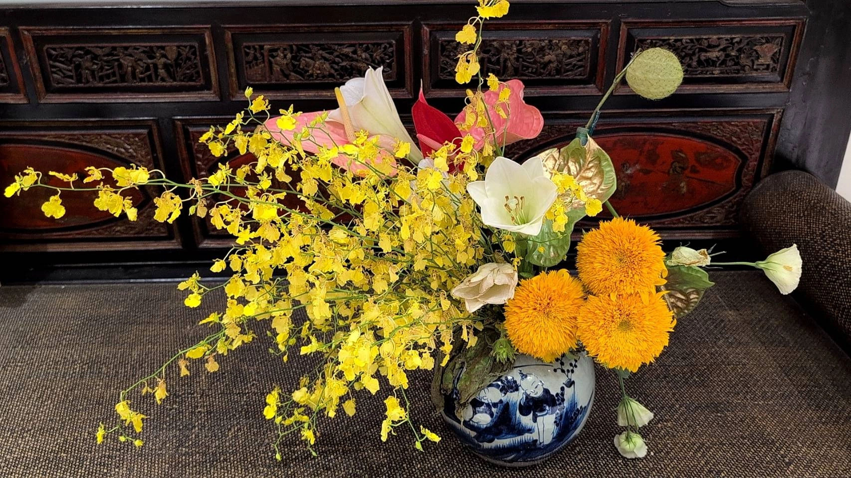 活動剩下不少花材棄之可惜,整理後又綻放生命力量,美化家居一角。