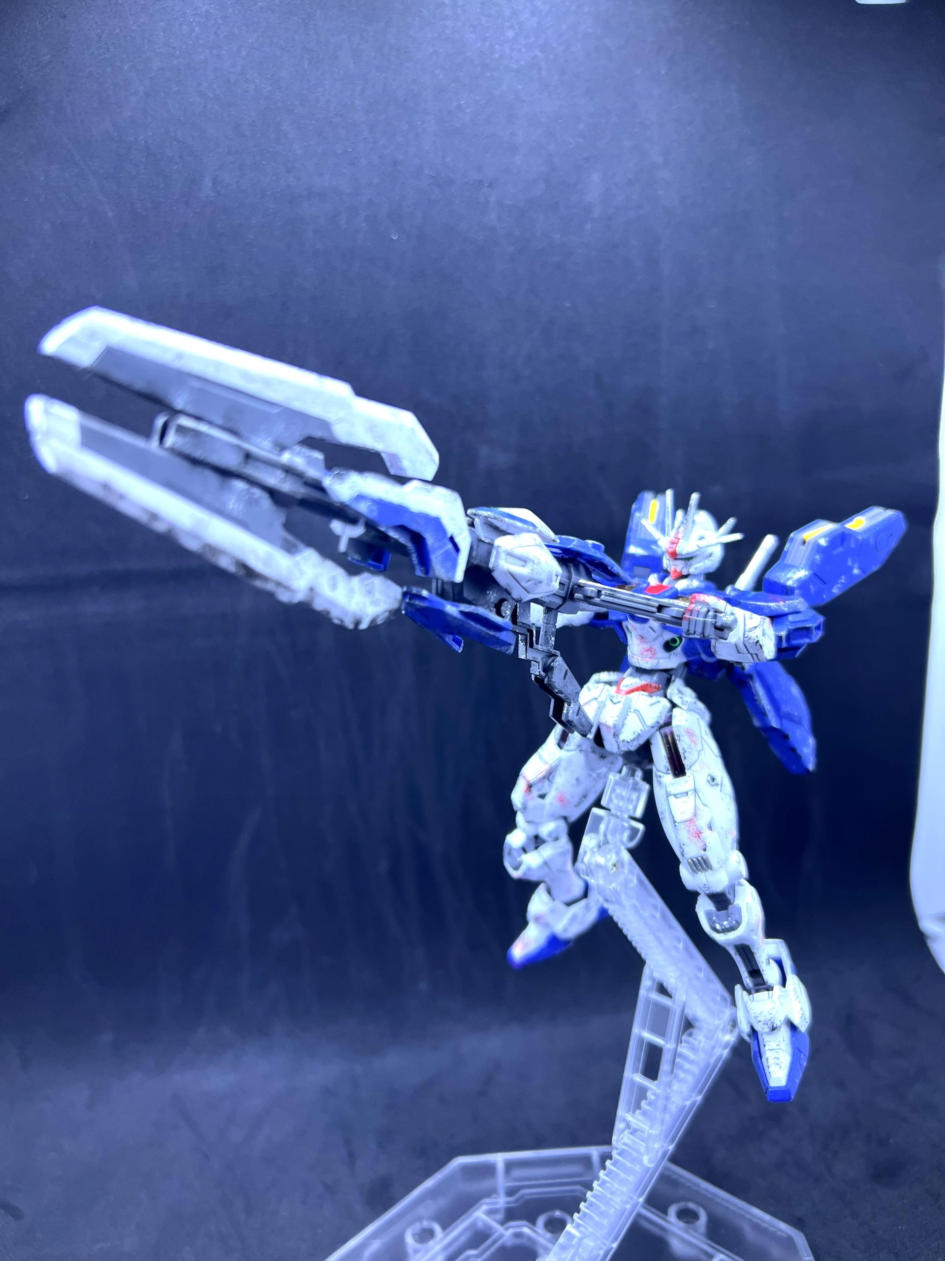 將之前最好的風靈修改型模型拿海棉沾取黑色、銀色、紅色9527水性漆在模型邊緣進行乾掃模擬出因時間關係產生的生鏽掉漆以及血漬,最後再噴一層消光保護漆保護漆料