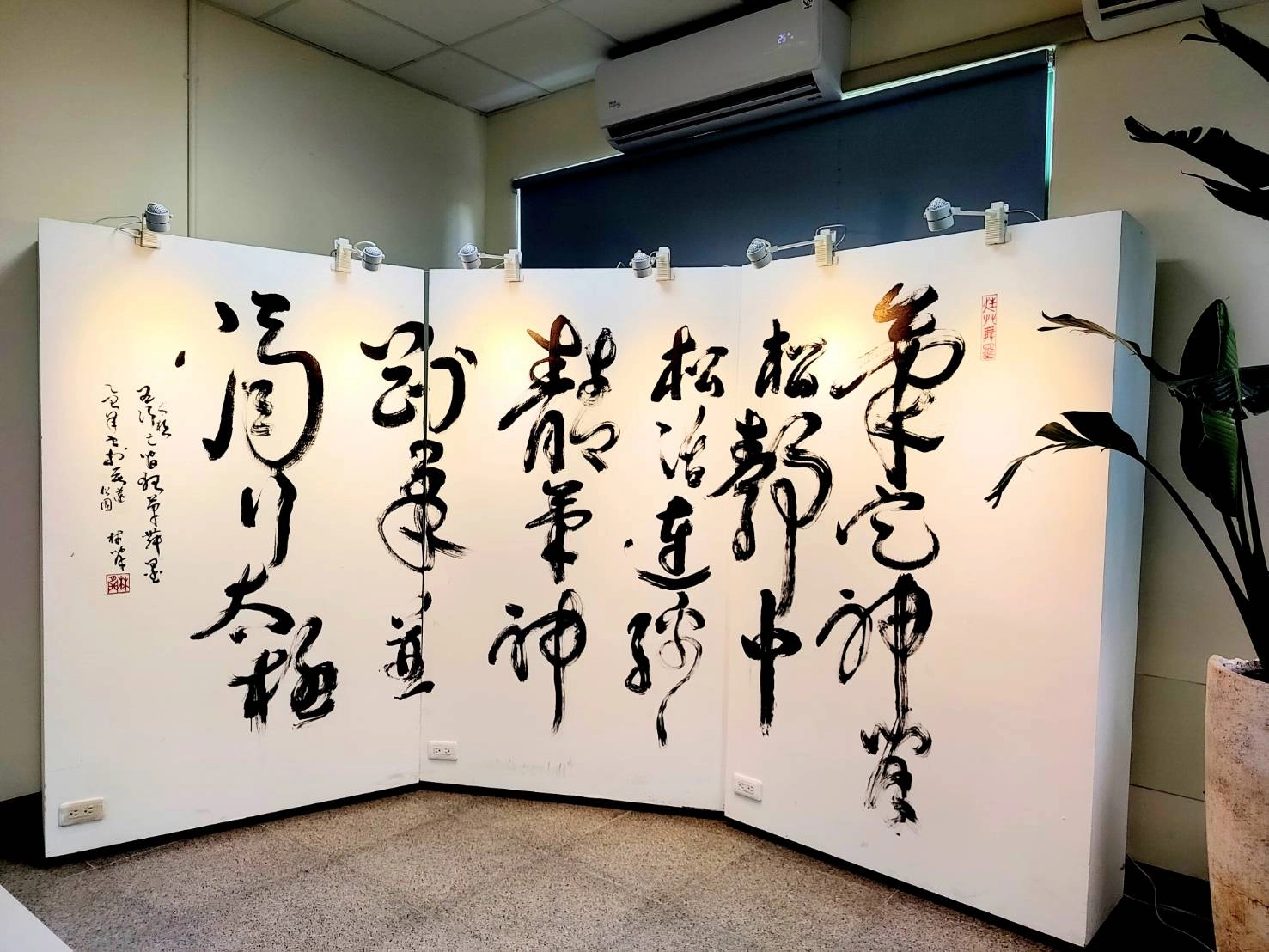 在松園的-舞墨太極-現場揮毫作品,移至東華大學招生代言,開心。書法作品200X360cm釋文:氣定神