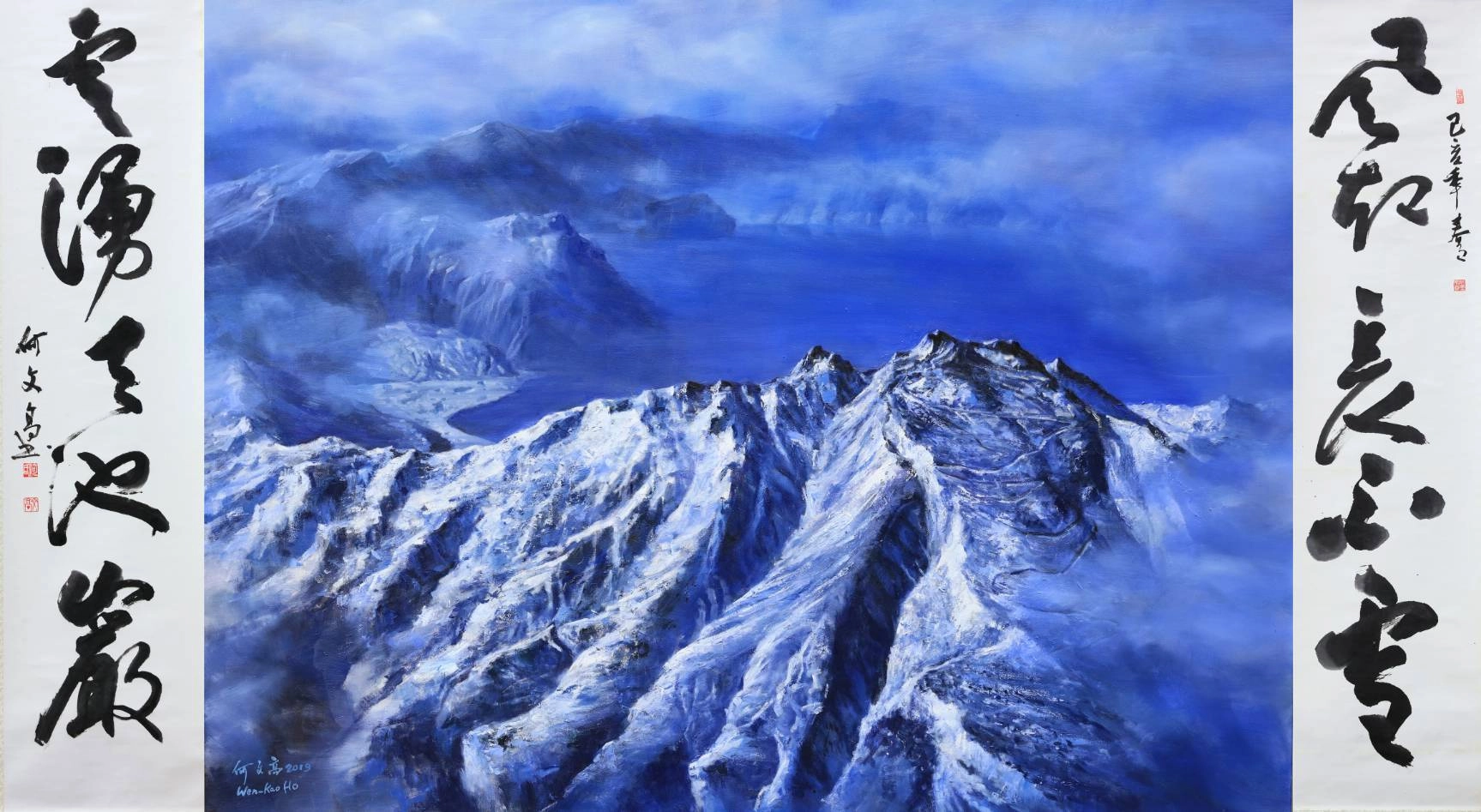 是配合80號的油畫【長白山天池】展出而創作的「風起長白雪,雲湧天池巖」這個對聯也是我自己想出來的,二