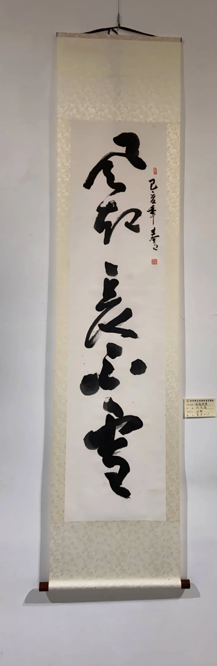 是配合80號的油畫【 長白山天池 】展出而創作的「風起長白雪,雲湧天池巖 」這個對聯也是我自己想出來的,二張書法加起來,也是全開。媒材:宣紙