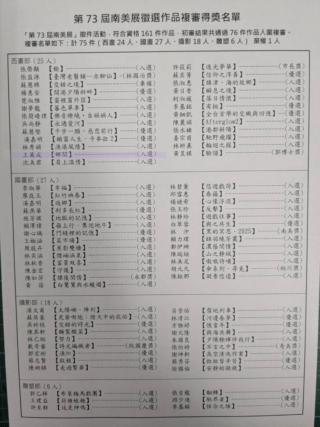 [鄉間Countryside]參加{第73屆南美展}入選,於台南文化中心展出。