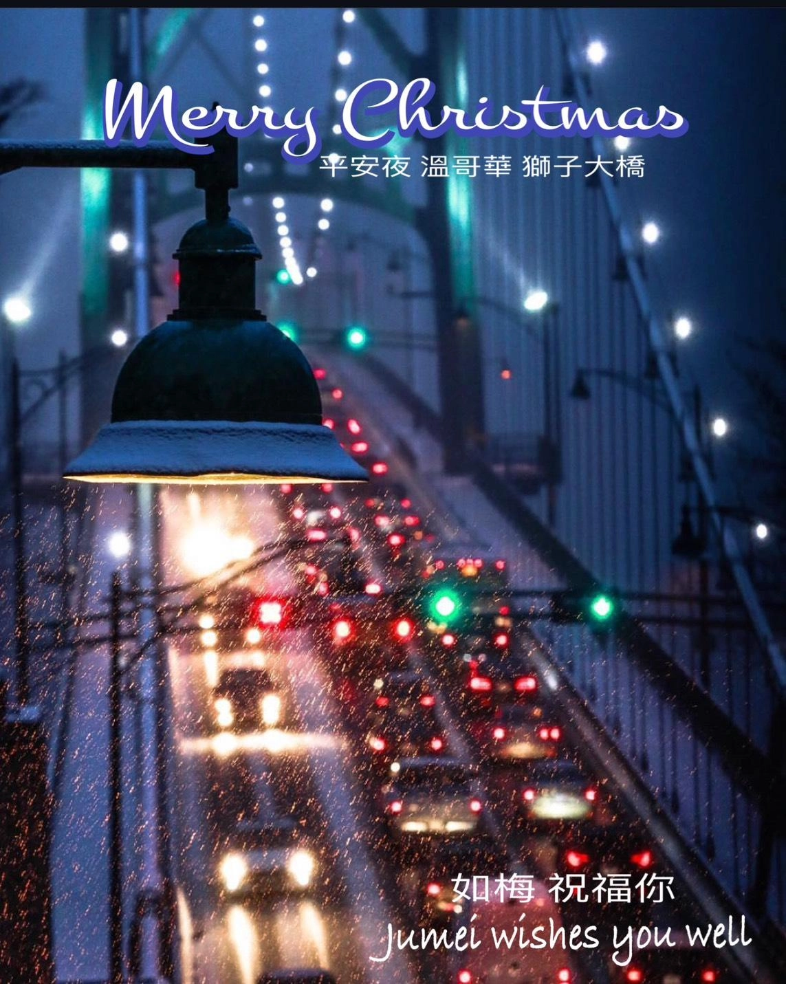 有一年疫情時的平安夜,Tim 很孤單的在溫哥華的獅子大橋頭拍照,剛好飄雪了,大家都回家過聖誕節,橋上大塞車,萬家燈火,只有Timㄧ人孤單的在橋頭拍下這張寂寞的平安夜!