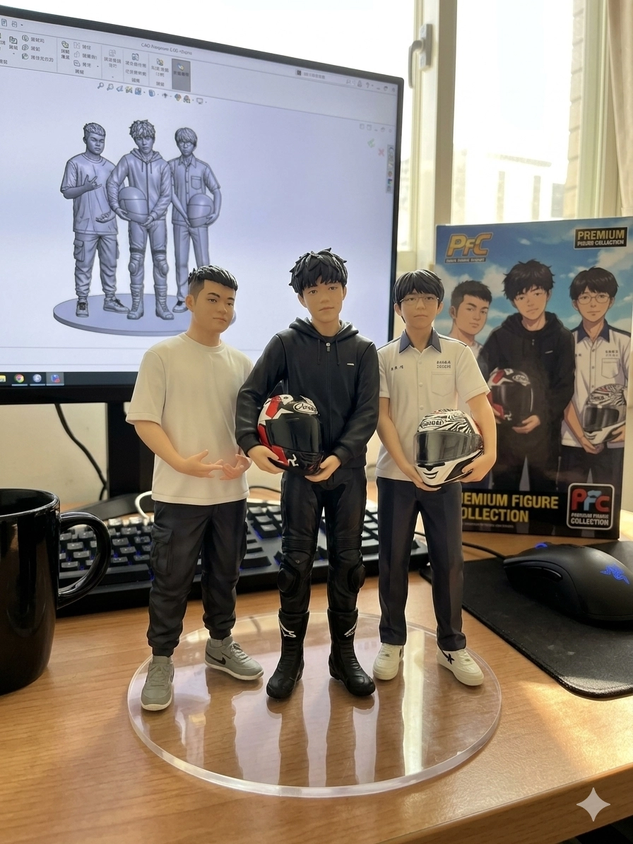 請用我提供的原圖,把圖片內主體變成電腦桌前的立體公仔。