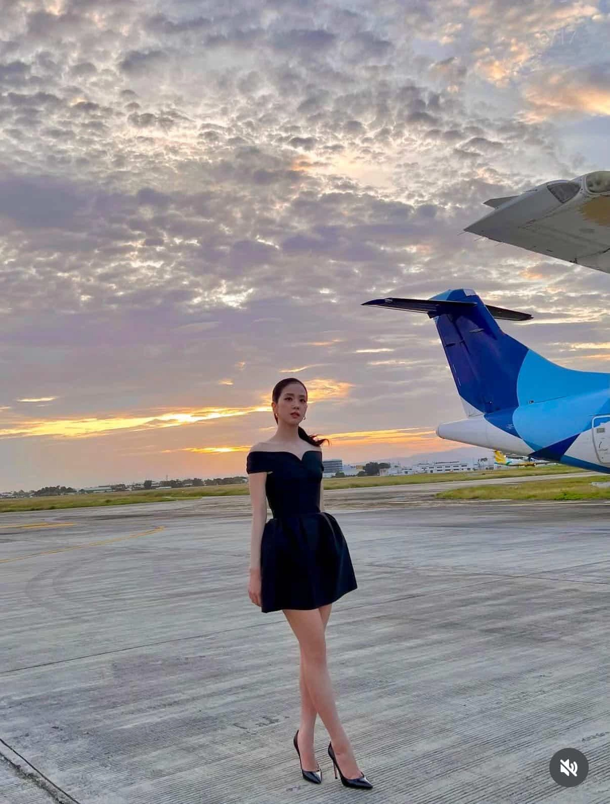 請幫我生成一個公仔圖像我想要裙子再長一點帶著卡地亞的項鍊頭髮造型變成公主頭旁邊要改成夢幻的飛機在豪華