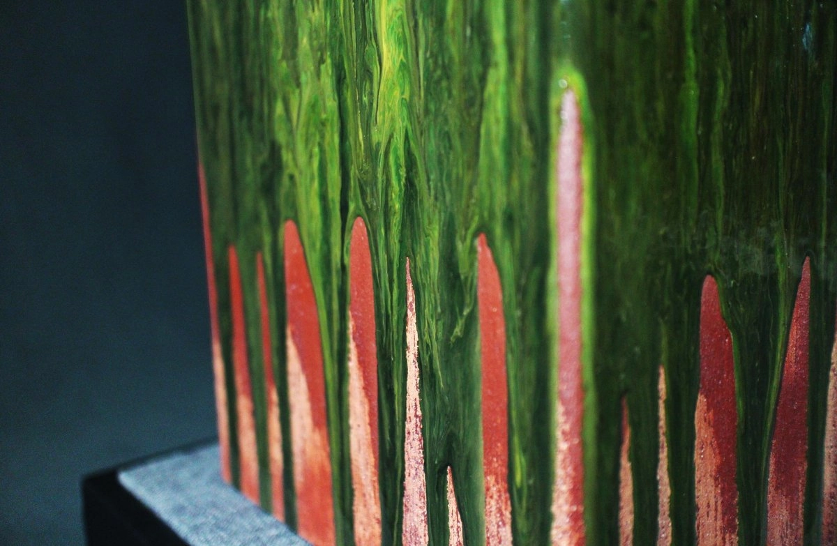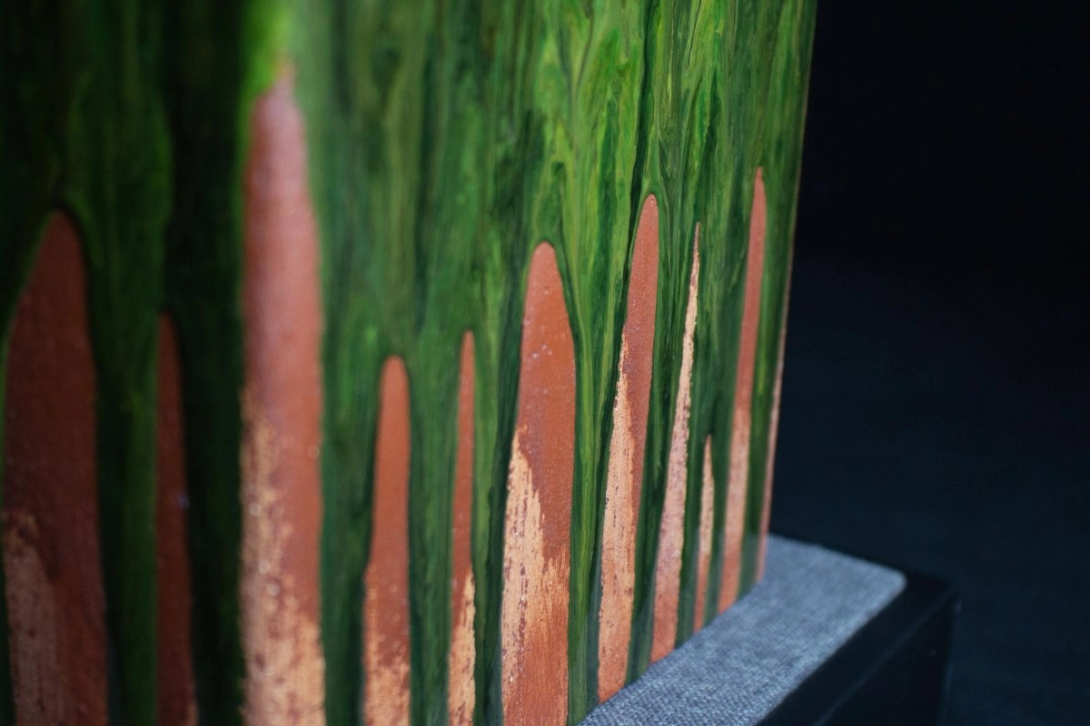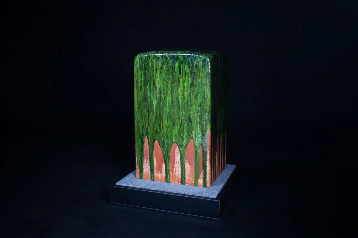 林靖崧老師運用當代表現技法,將印章的形象加入極簡、抽象概念,融入東方水墨書寫意象,使畫面富有山水與歷史的痕跡。