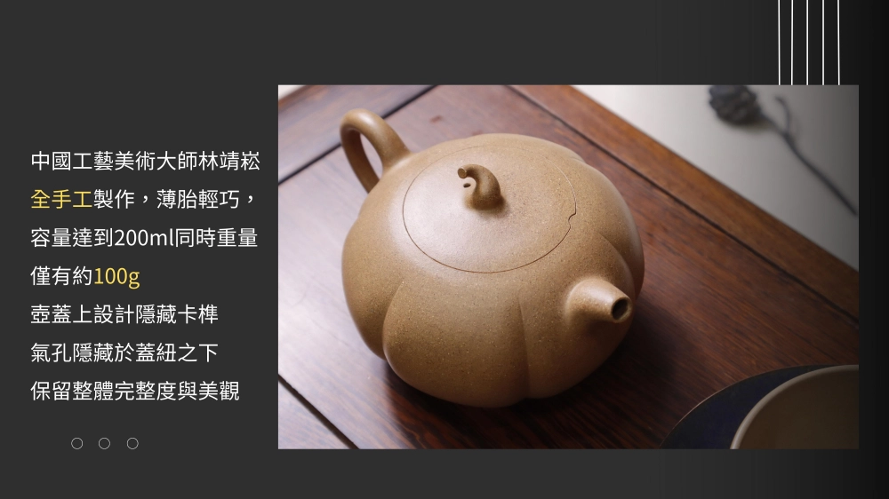 【說明】: 中國工藝美術大師林靖崧老師全手工製作,薄胎輕巧,容量達200ml同時重量僅約100g。
