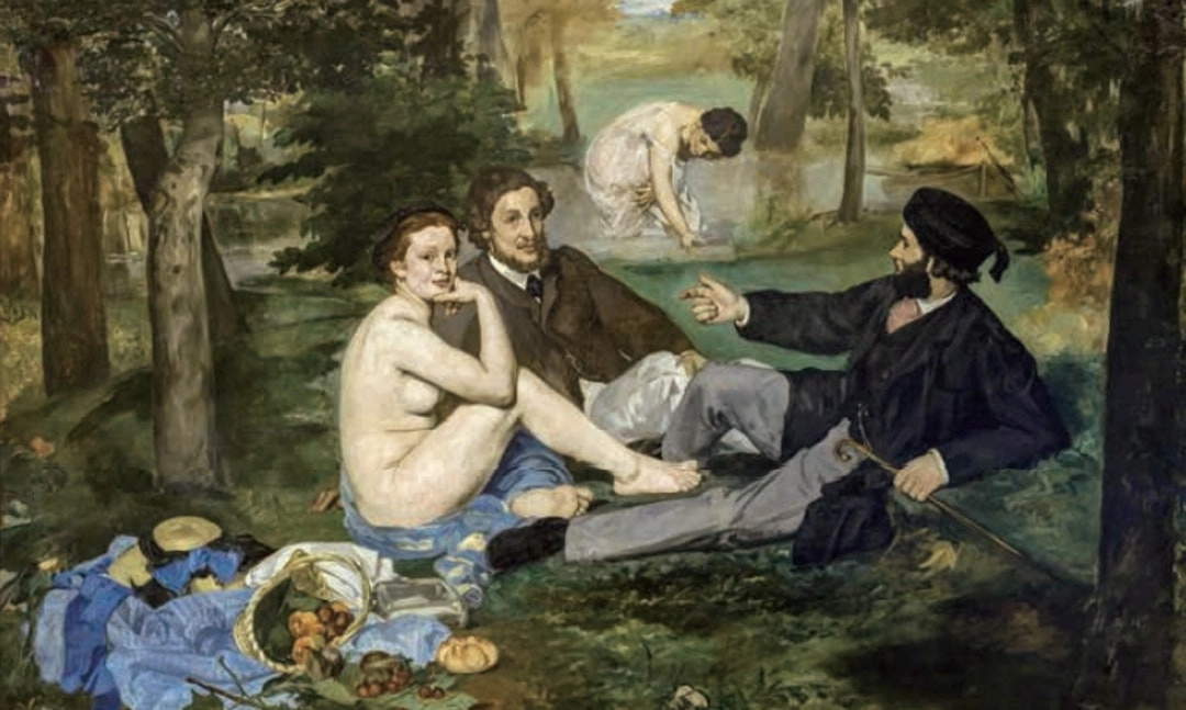 圖一為陳俊州仿馬奈「野餐」之作品 ,圖二為馬奈「野餐」原作。