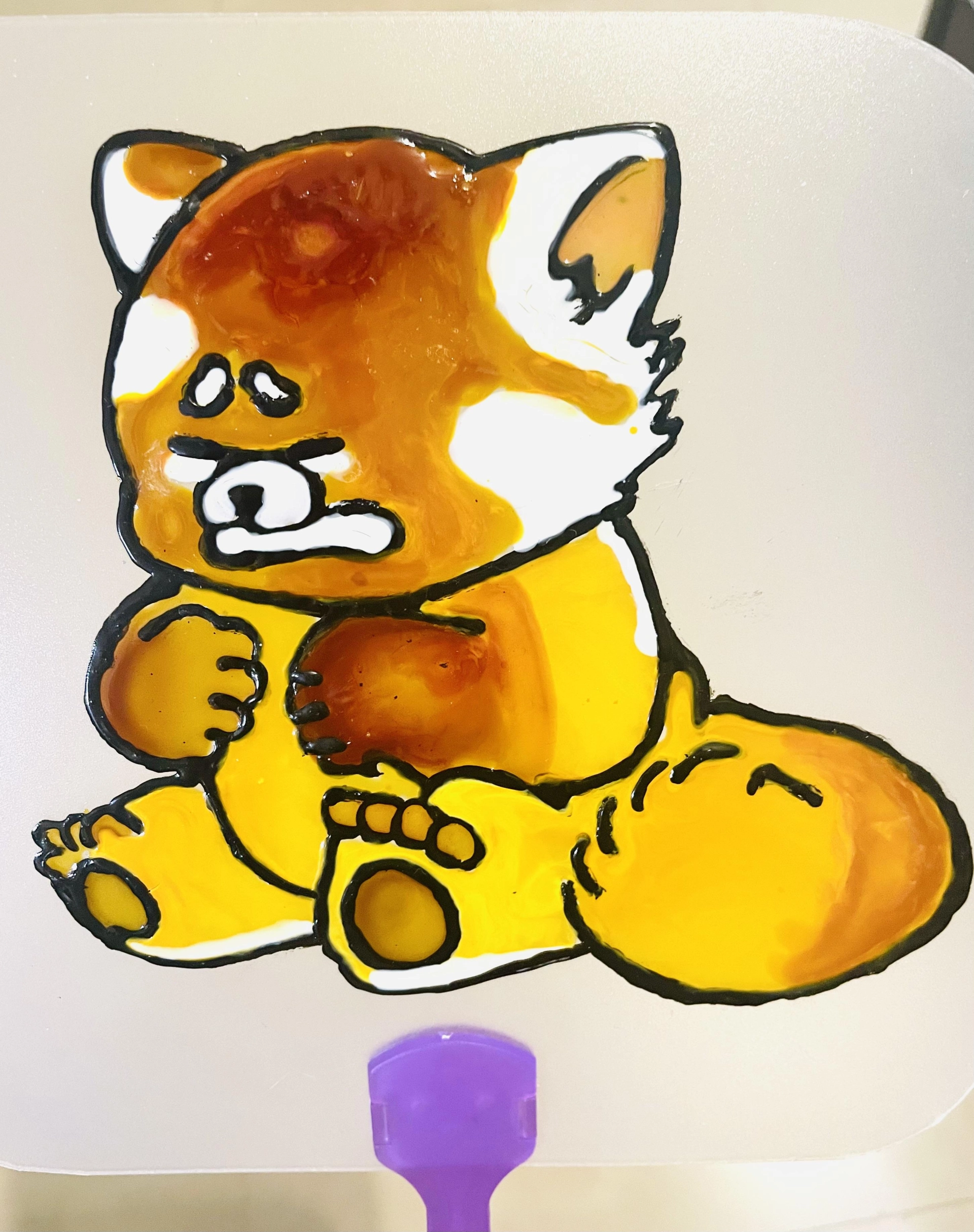 在這一方小小的壓克力板上,五朵絢麗的花靜靜綻放。每一筆描邊、每一滴顏料,都像是藏著深情的心意。藍紫如