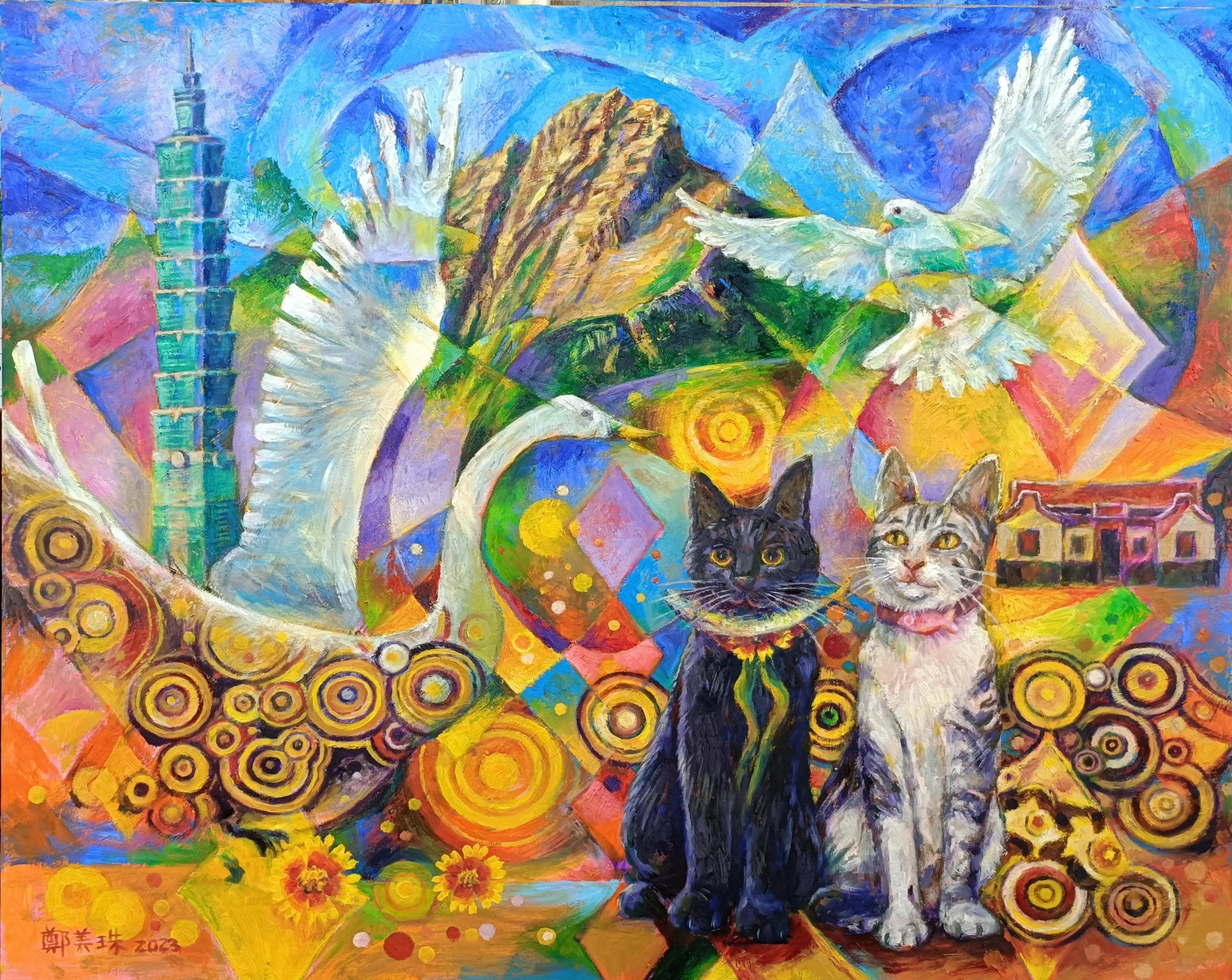 【全臺首學】此畫是吾人在2017年前後,嘗試以重複曝光的手法展現寫實與意象結合的形式,復活中國傳統畫