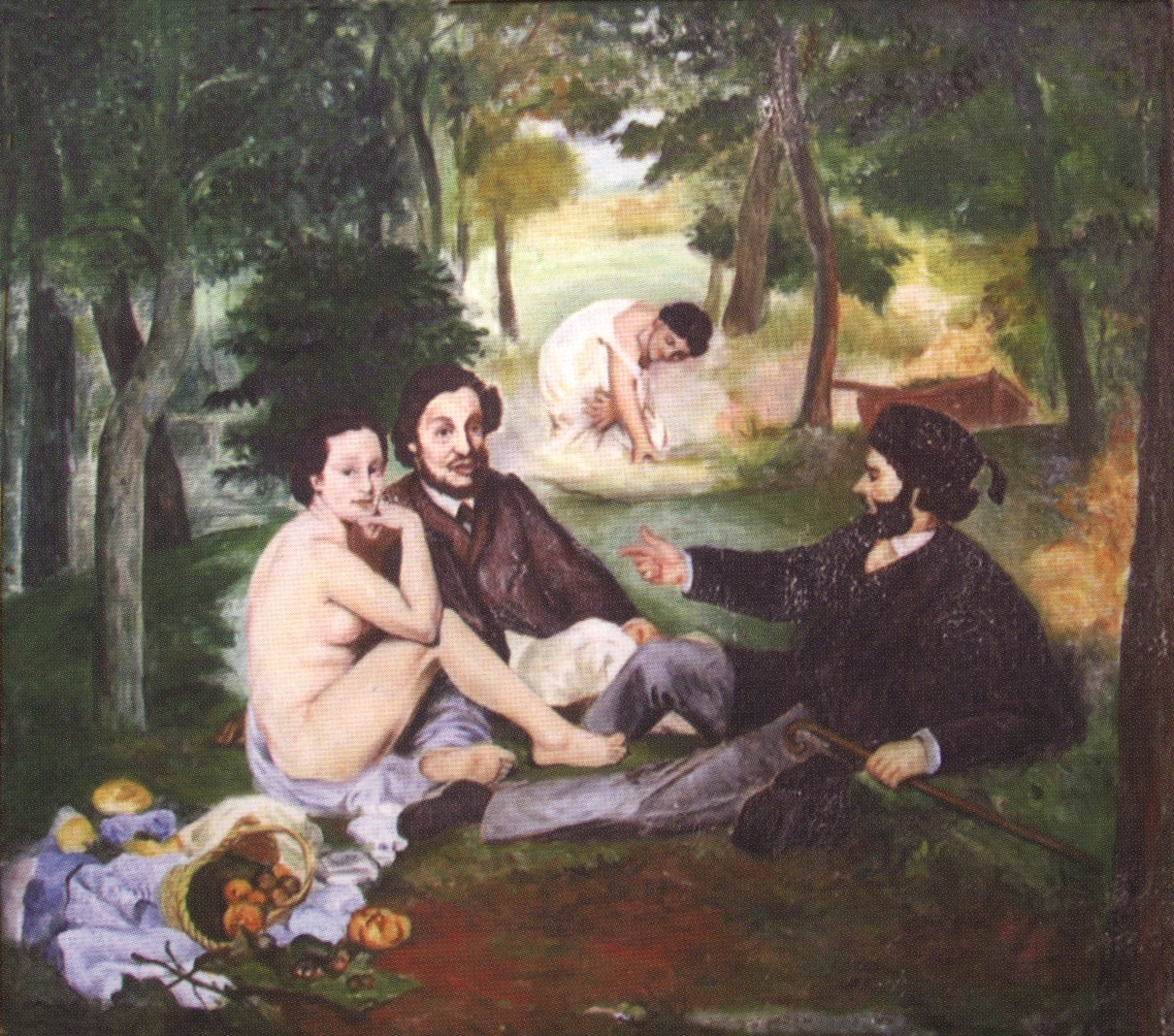 圖一為陳俊州仿馬奈「野餐」之作品,圖二為馬奈「野餐」原作。