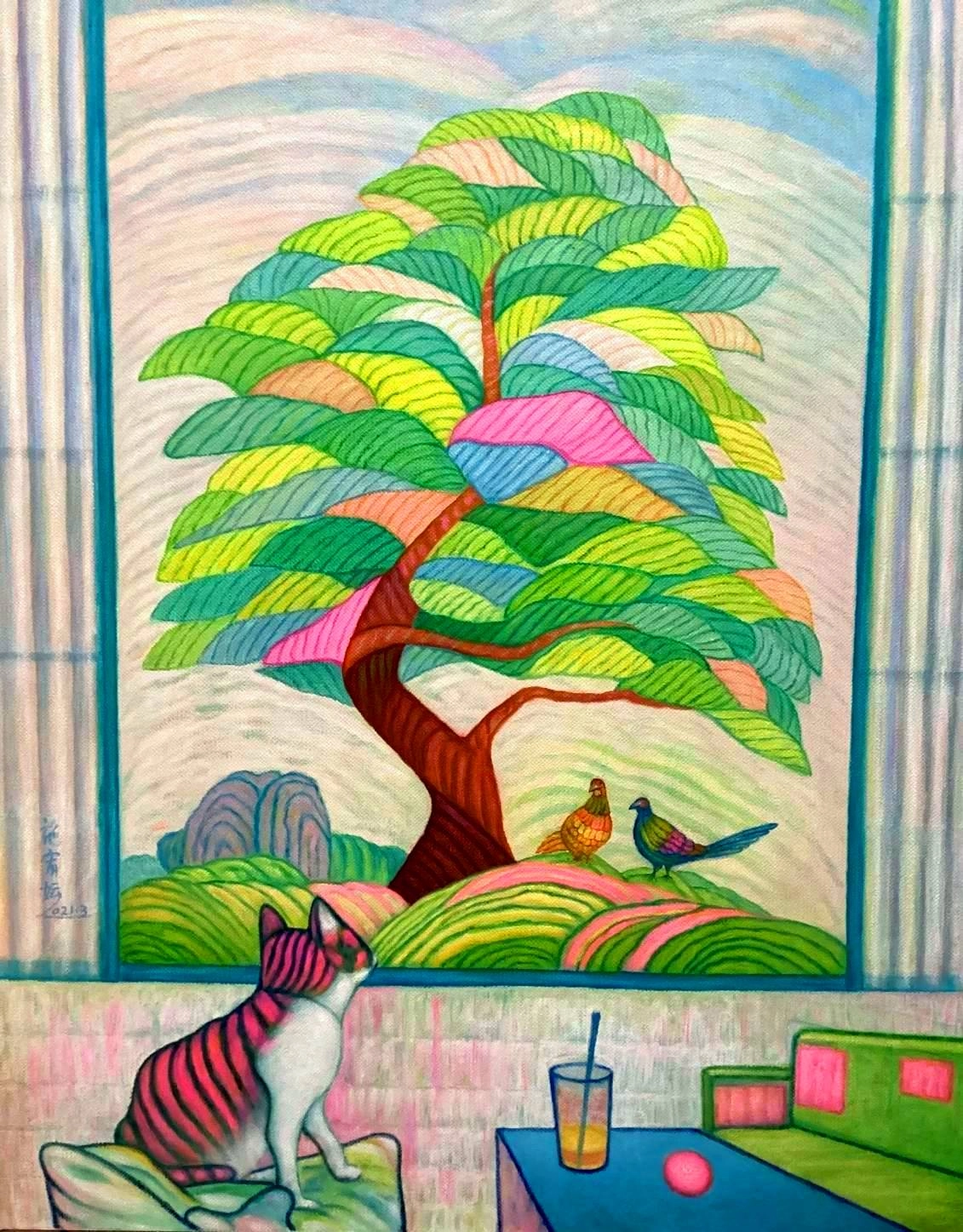 本幅水彩作品主題內容是我所設計設置在澎湖的公共藝術作品,作品由上而下依時間序為:90年「夏日風情」(