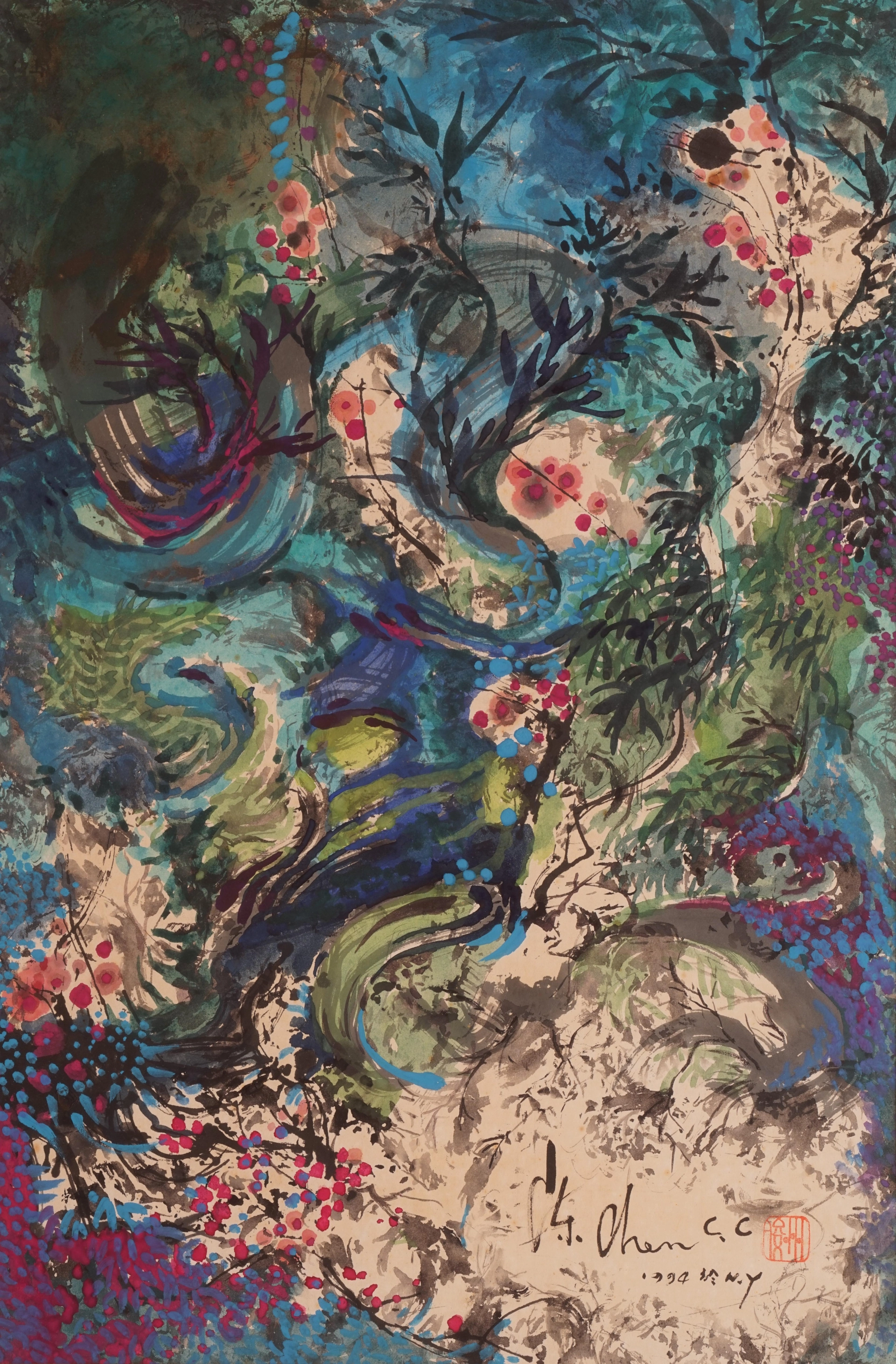 註:彩羽蒼松畫的是瀕臨絕種的棕尾紅雉。