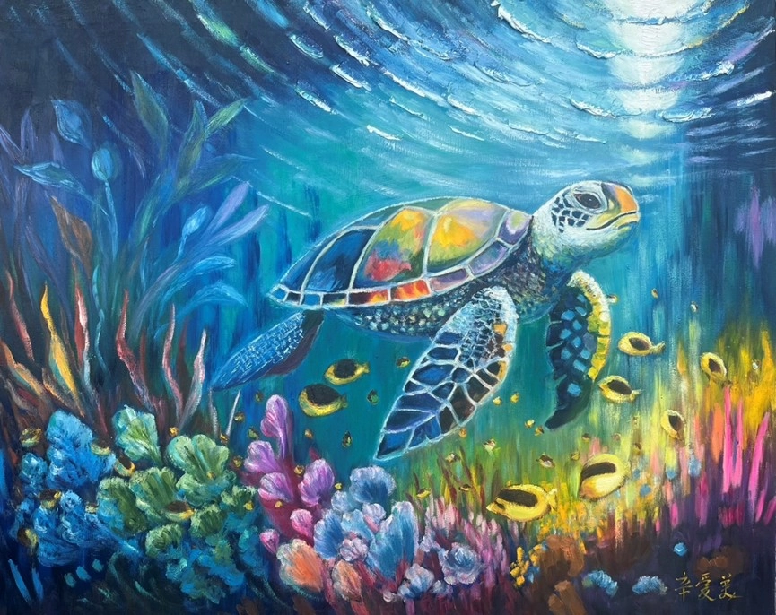 作品說明:繽紛絢爛的藍色國度,如夢似幻的海底世界,海洋深處悄然奏起詩意的樂章,光影在水中流轉,與海龜