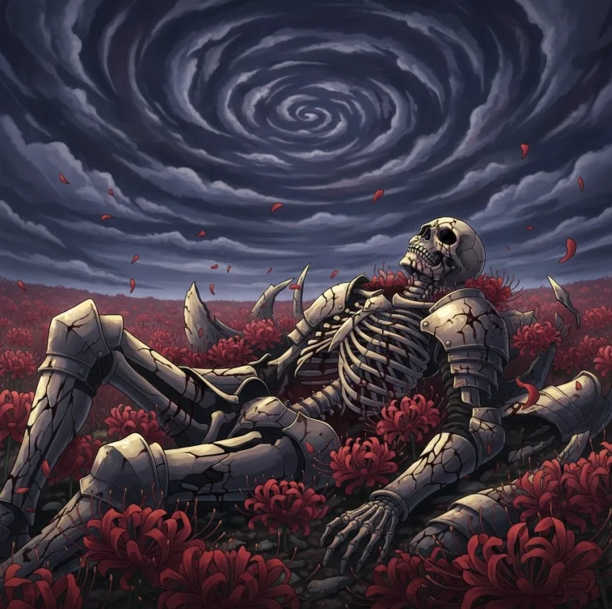 《彼岸花之輪迴》|BLOOMOFREBIRTH骸骨象徵肉體的終點,彼岸花從裂縫中盛開,像是提醒——即